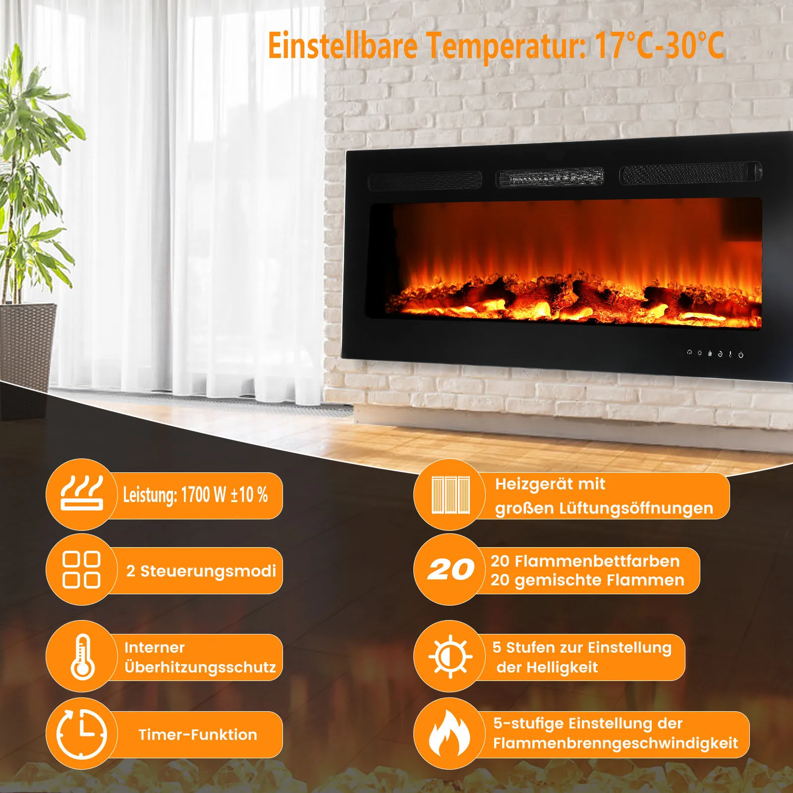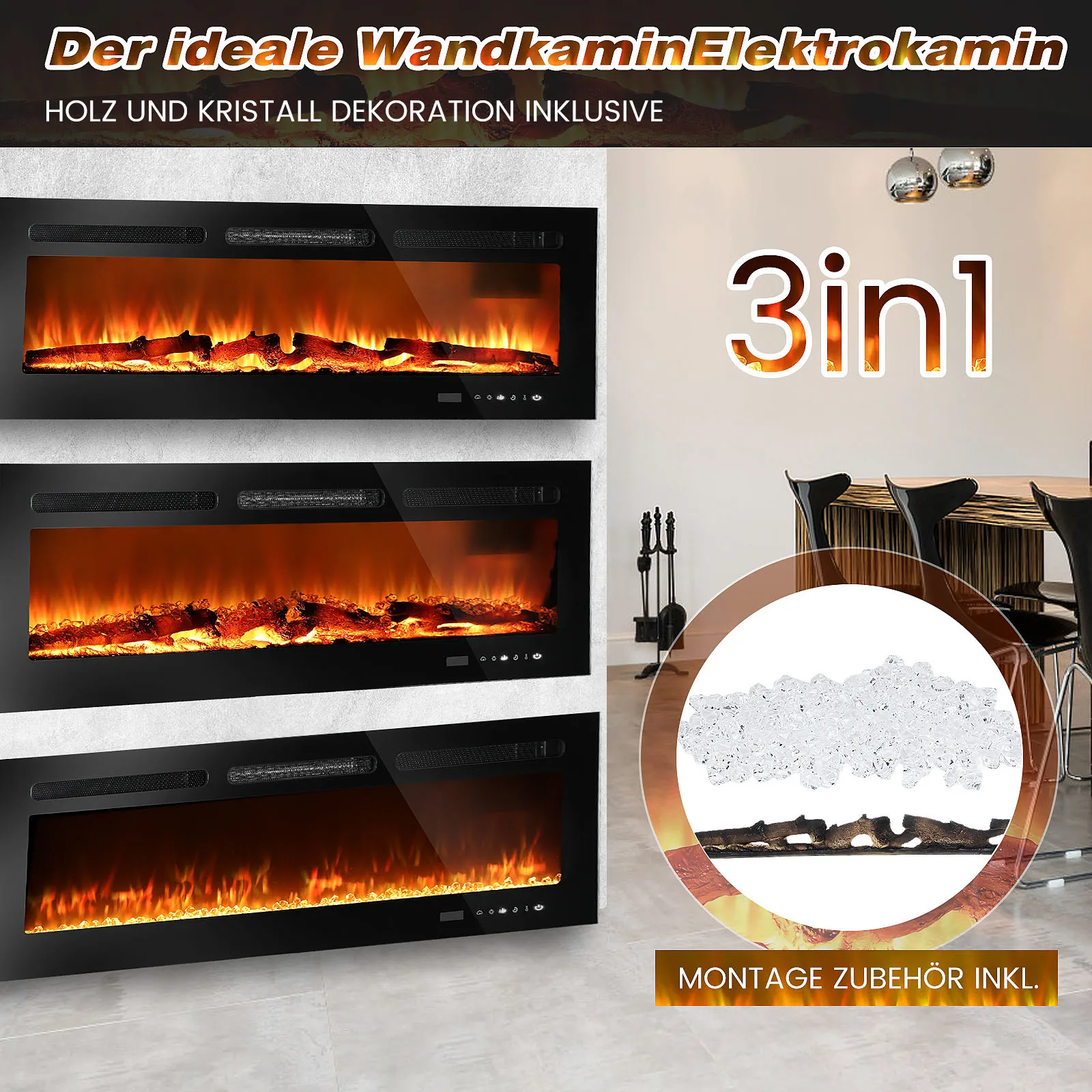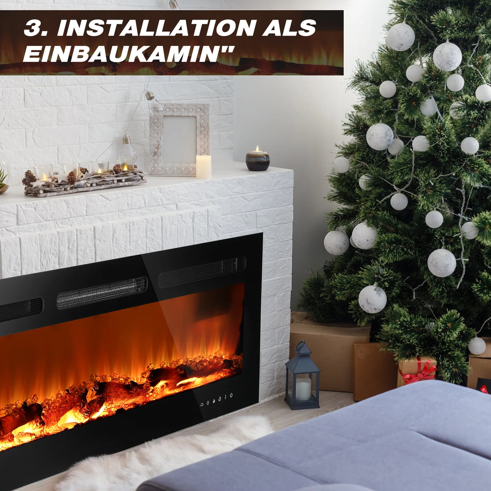 ДИЗАЙН 3-В-1|Электрический камин вневременно элегантен.Будучи отдельно стоящим, настенным или встроенным камином, он идеально вписывается в любой стиль дизайна интерьера.Благодаря высококачественной конструкции камин можно легко интегрировать в любую стену, поверхностную конструкцию или стену мультимедиа или надежно стоять на различных поверхностях.