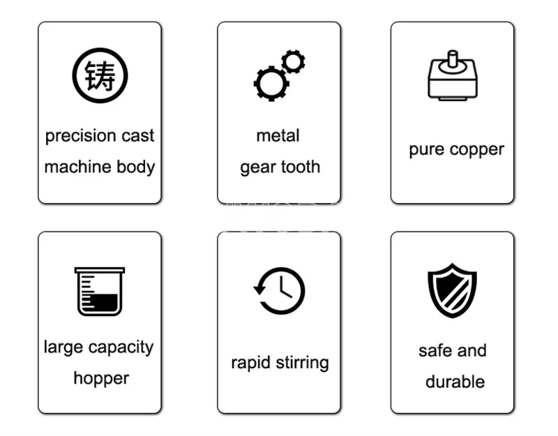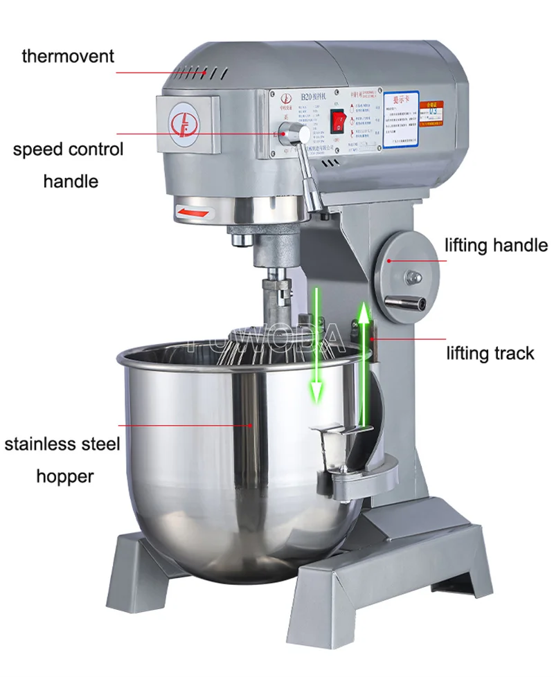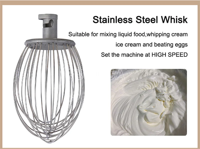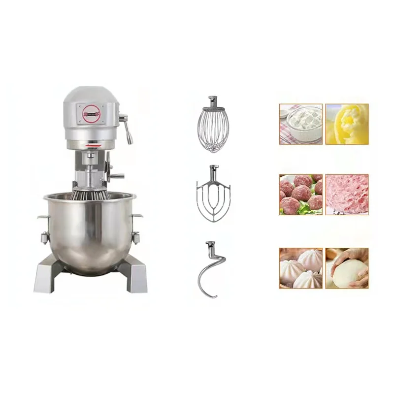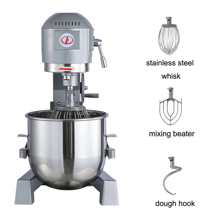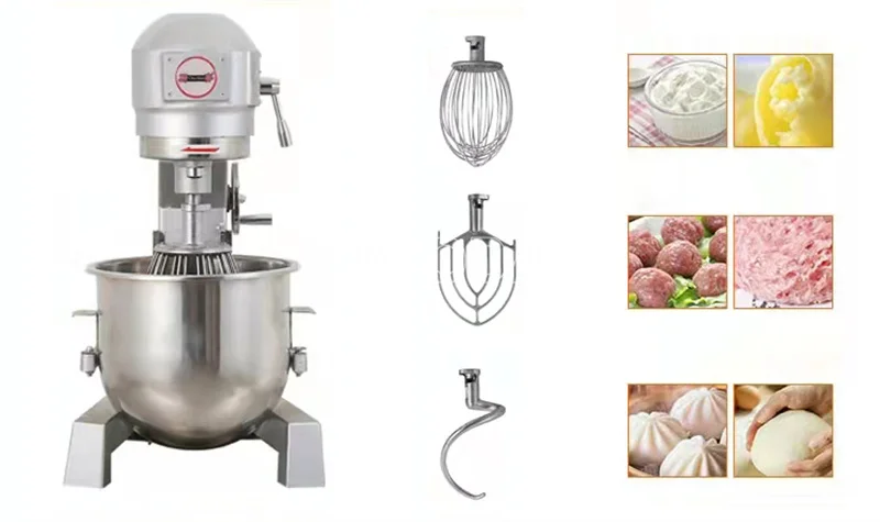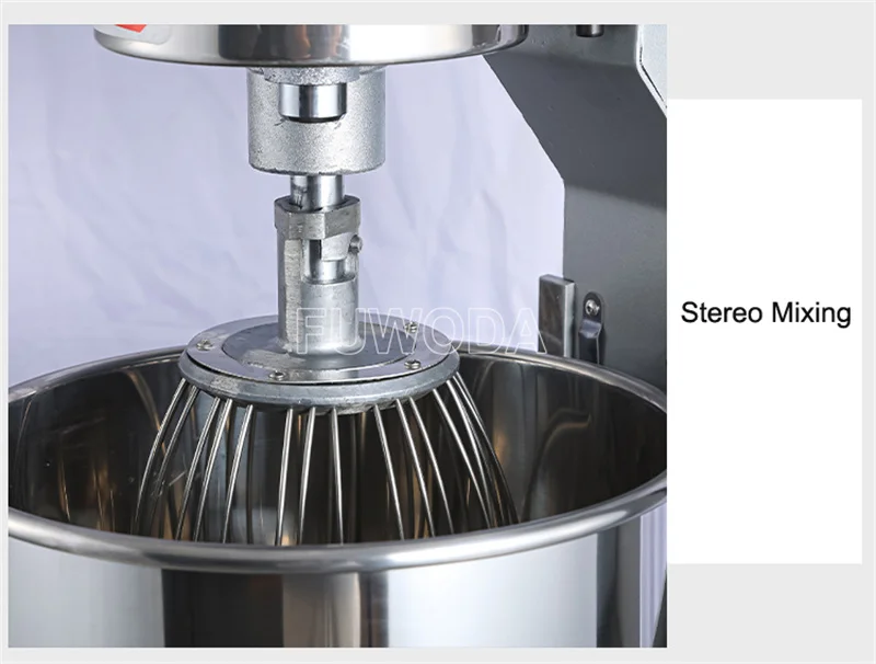 Машина сочетает в себе принцип планетарной революции и вращения, она может перемешивать пищевые материалы в различных направлениях и более равномерно перемешивать их.Он оснащен тремя видами перемешивающих валов, которые могут взбивать яйца, перемешивать и смешивать муку. Компоненты для смешивания пищевой нержавеющей стали 304, устойчивые к ржавчине, коррозии, легко чистятся.