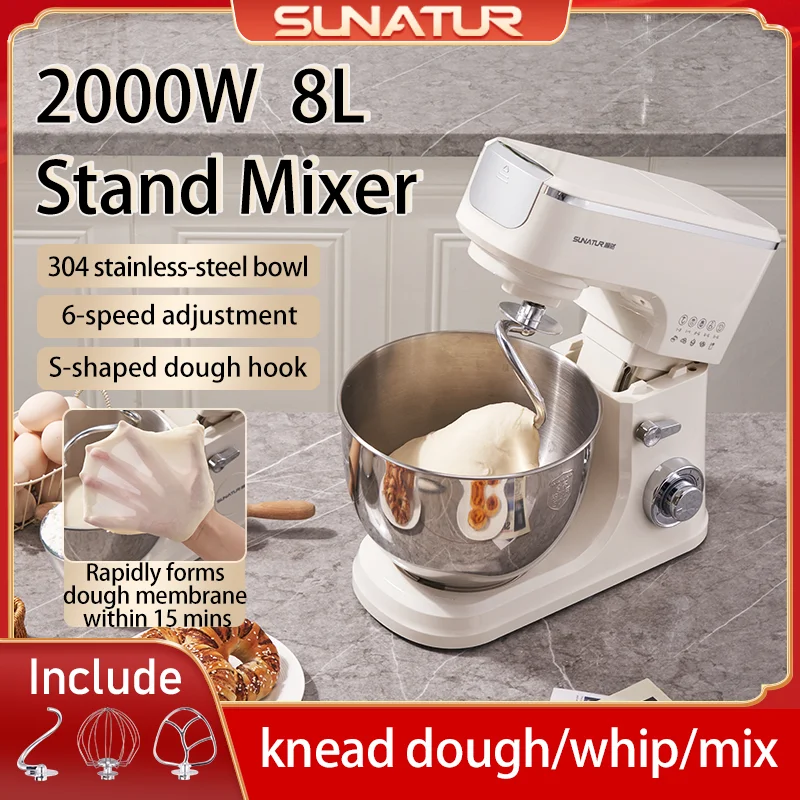 Электрический кухонный блендер SUNATUR, 2000 Вт, 8 л, миксер для взбивания яиц, крем, универсальный миксер, бытовой автоматический тестомес
