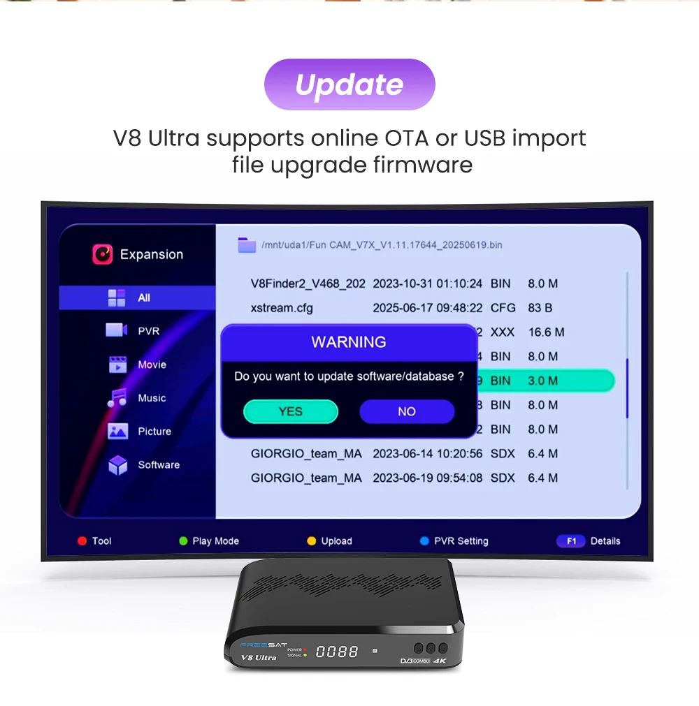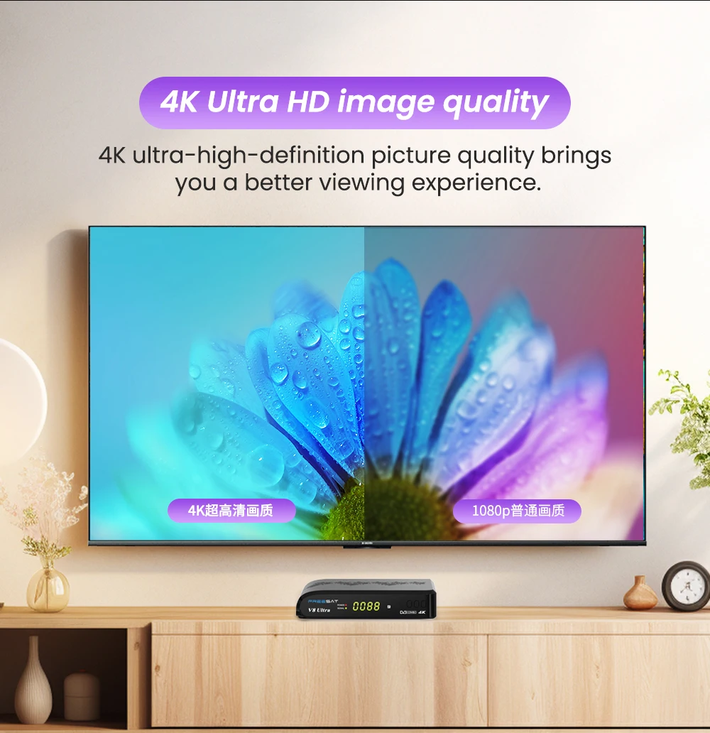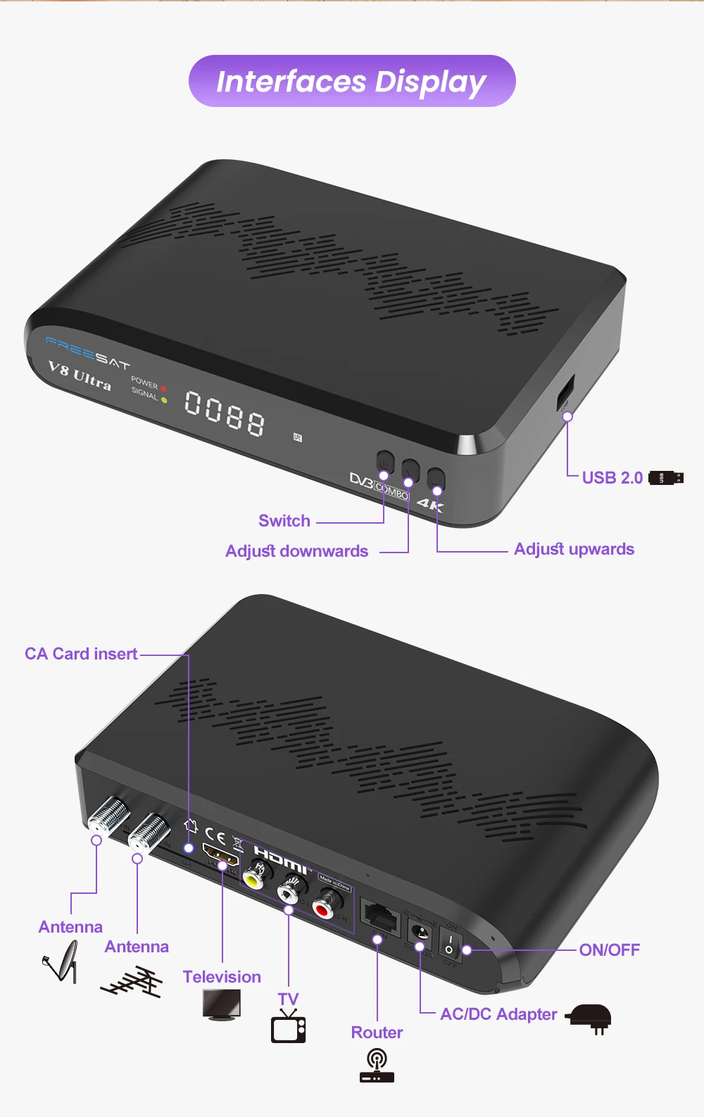 FREESAT V8 Ultra 4K UHD спутниковый ресивер DVB-S2X/S2/S/T2/T/C H.265 2,4G Wi-Fi 1000M LAN CA Слот для автомобилей MARS FUNCAM M3U ТВ-декодер