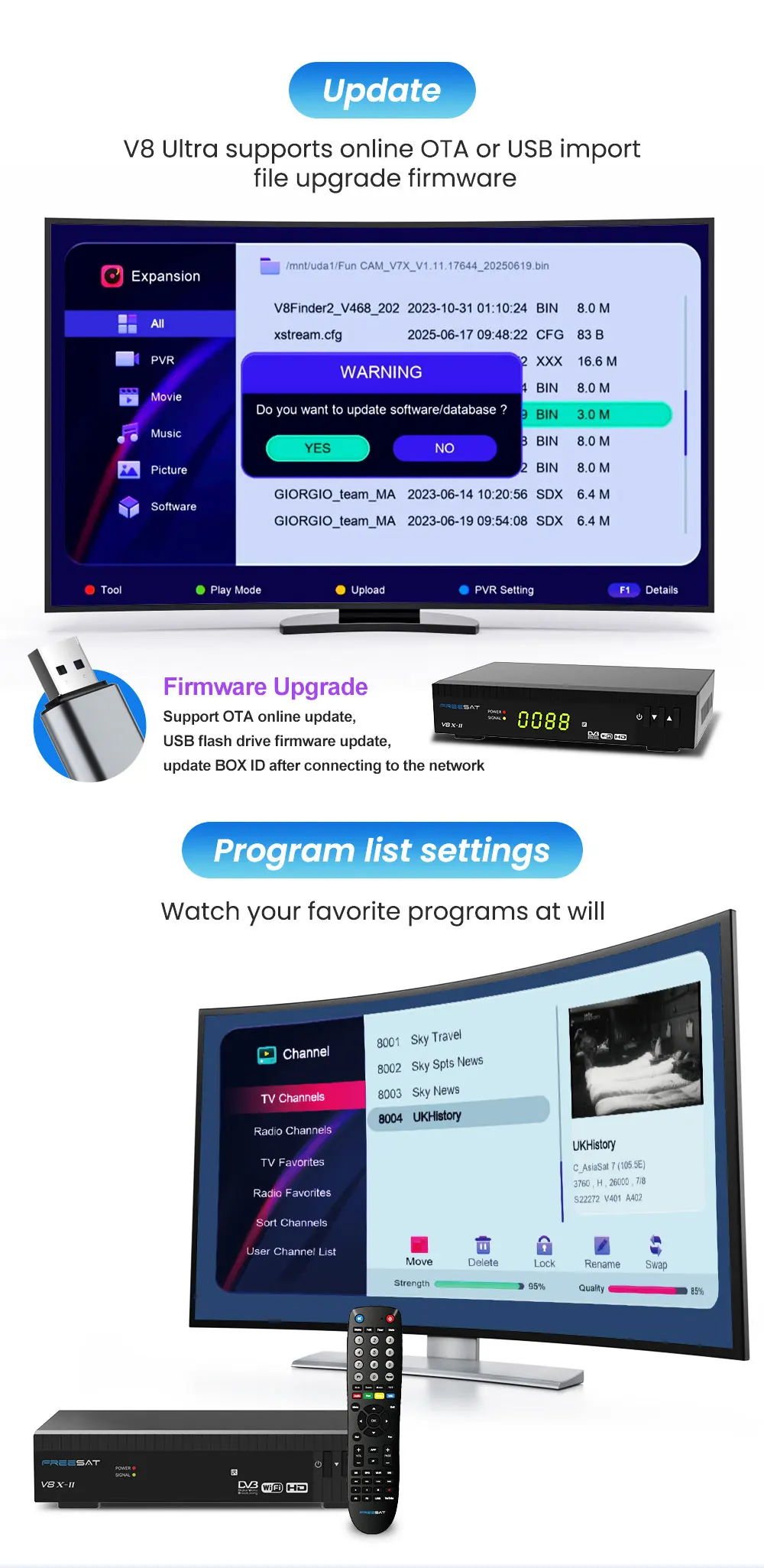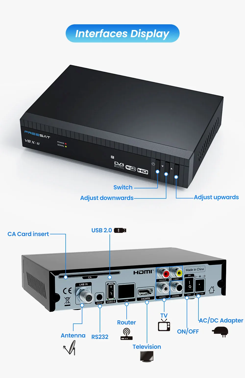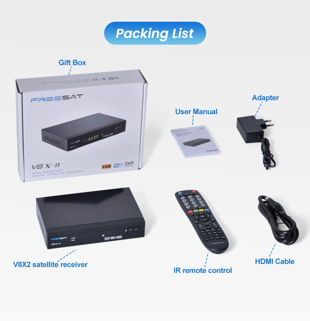 FREESAT V8X 2-приемник спутникового телевидения DVB-S/S2/S2X, H.264/H.265 Встроенный WIFI, MARS/FunCam/CCAM 1080P FHD ТВ-приставка со слотом для CA-карты