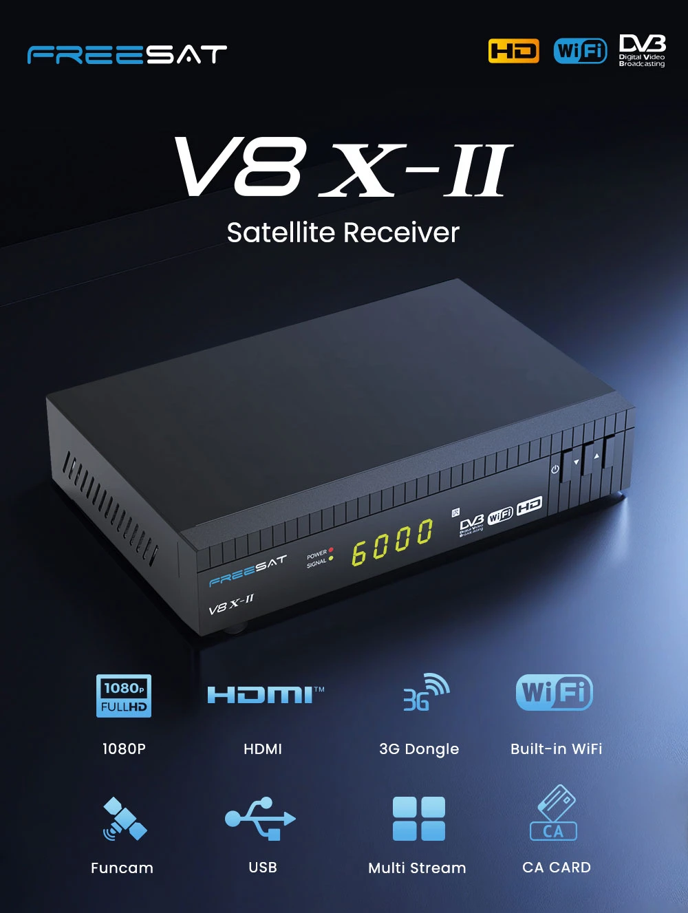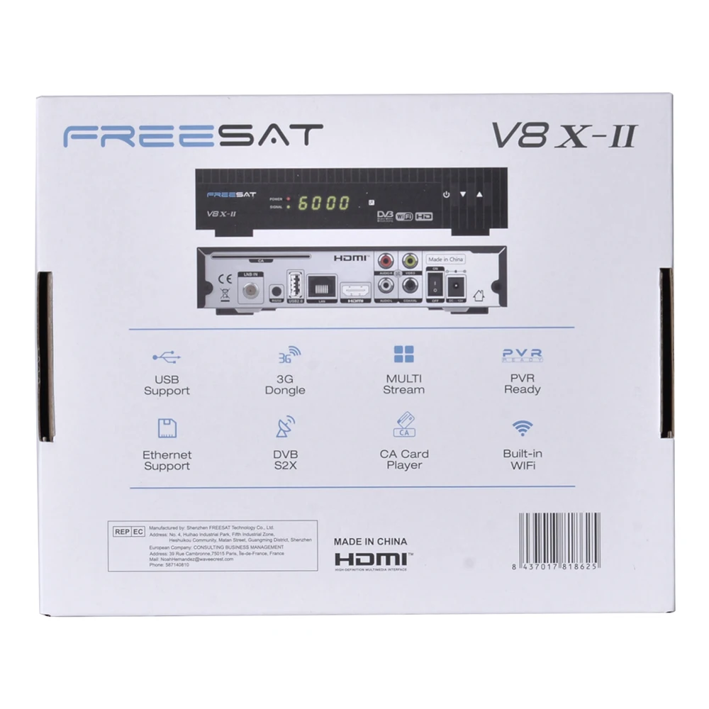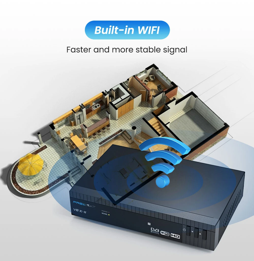 FREESAT V8X 2-версия FunCam HD-приемник спутникового телевидения DVB-S2X/S2/S, H.264/H.265 Встроенный WIFI, MARS/CCAM ТВ-приставка со слотом для CA-карты