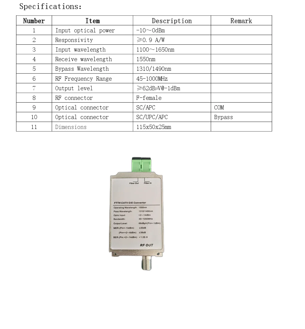 FTTH CATV Оптический приемник Кабель ТВ Оптический ТВ-трансивер Мини-приемник CATV Цифровой ТВ-приемник