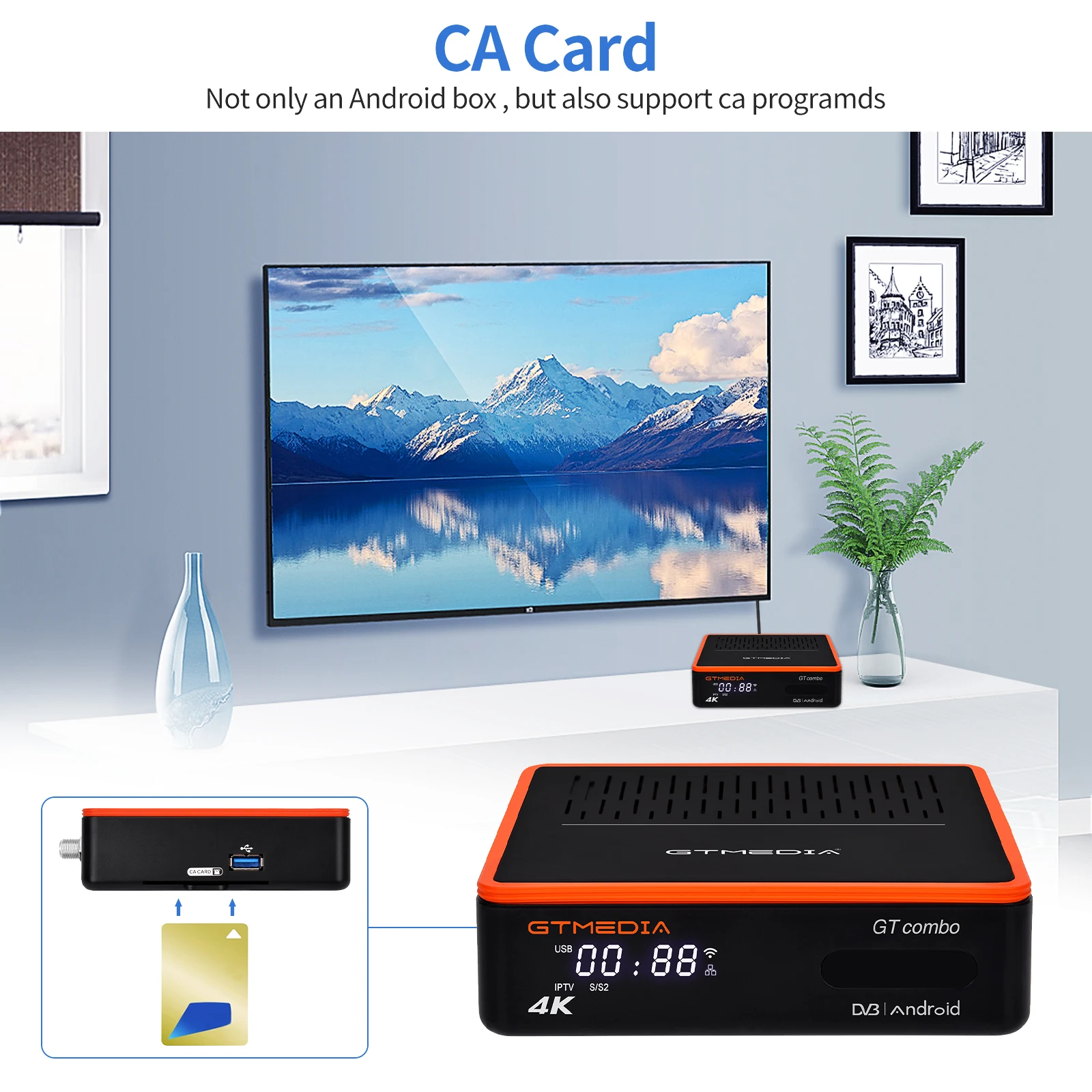 GTMEDIA GT COMBO Android TV BOX Спутниковый ресивер DVB-S2X/S2/S DVB-T/T2/C 4K UHD HDR 10 H.265 2 ГБ + 16 ГБ WIFI 5G 2,4G Поддержка Mars