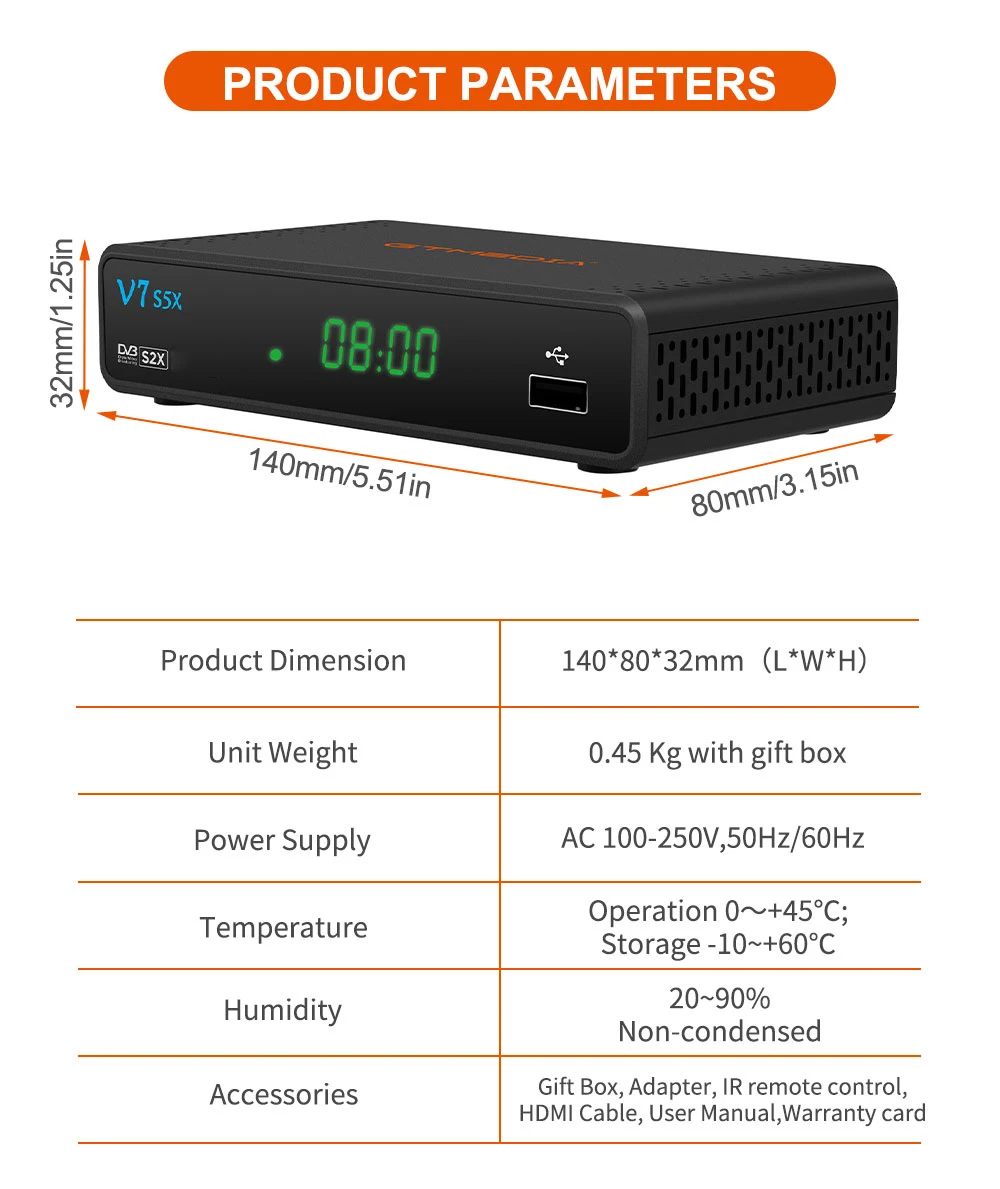 GTMEDIA V7 S5X Спутниковый HD-приемник DVB S2X S2 S H.265 1080P ТВ-декодер USB WIFI Поддержка BISS Auto-roll Full PowerVu CCAM E.CAM