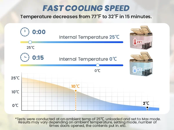 Диапазон охлаждения: -20°С до 20°C Быстрое охлаждение: капли с 20.°С до 0°C через 15 минут и до -20°C менее чем за 60 минут (при 25°C температура окружающей среды).Лед не требуется — эффективно сохраняет еду и напитки свежими, идеально подходит для поездок, кемпинга и приключений на свежем воздухе.