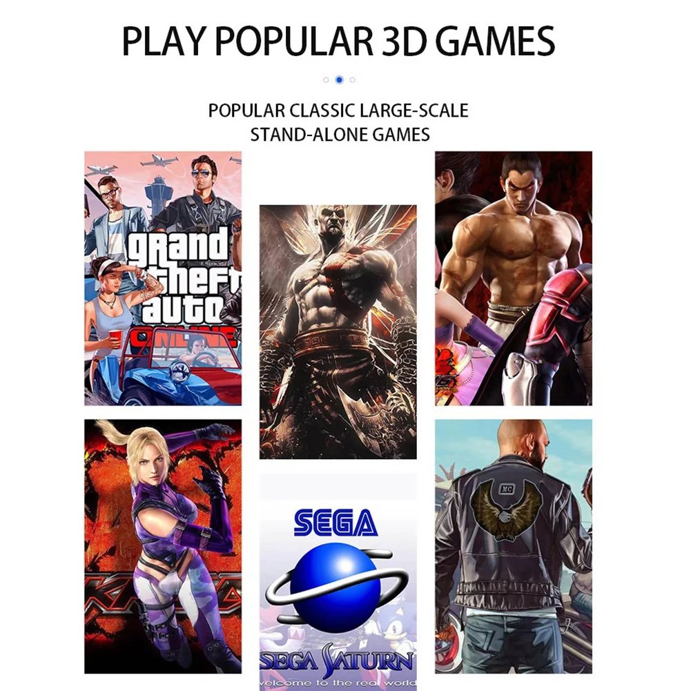 Поддержка совместимости с PSP, Saturns, PS1, N64, CP1, CP2, CP3, Neogeo, GBX, MAME, FC, FCE, SFC, GB, GBA, GBC, MDNGPC, MEGADRIVE, GAMEGEAR, SEGAGENIS, SG-1000 и другими более 40 симуляторами, игры можно добавить
