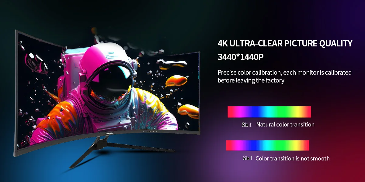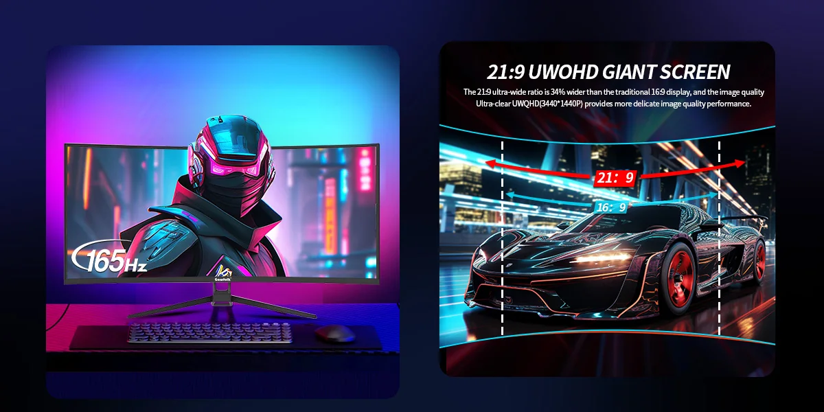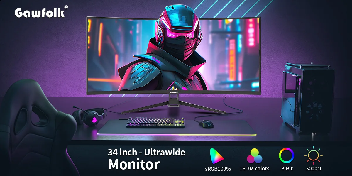 Игровой монитор Gawfolk Curved, 34-дюймовый UWQHD 3440x1440P, сверхширокий экран ПК 1500R, 165 Гц, изогнутый компьютерный экран, панель экрана VA
