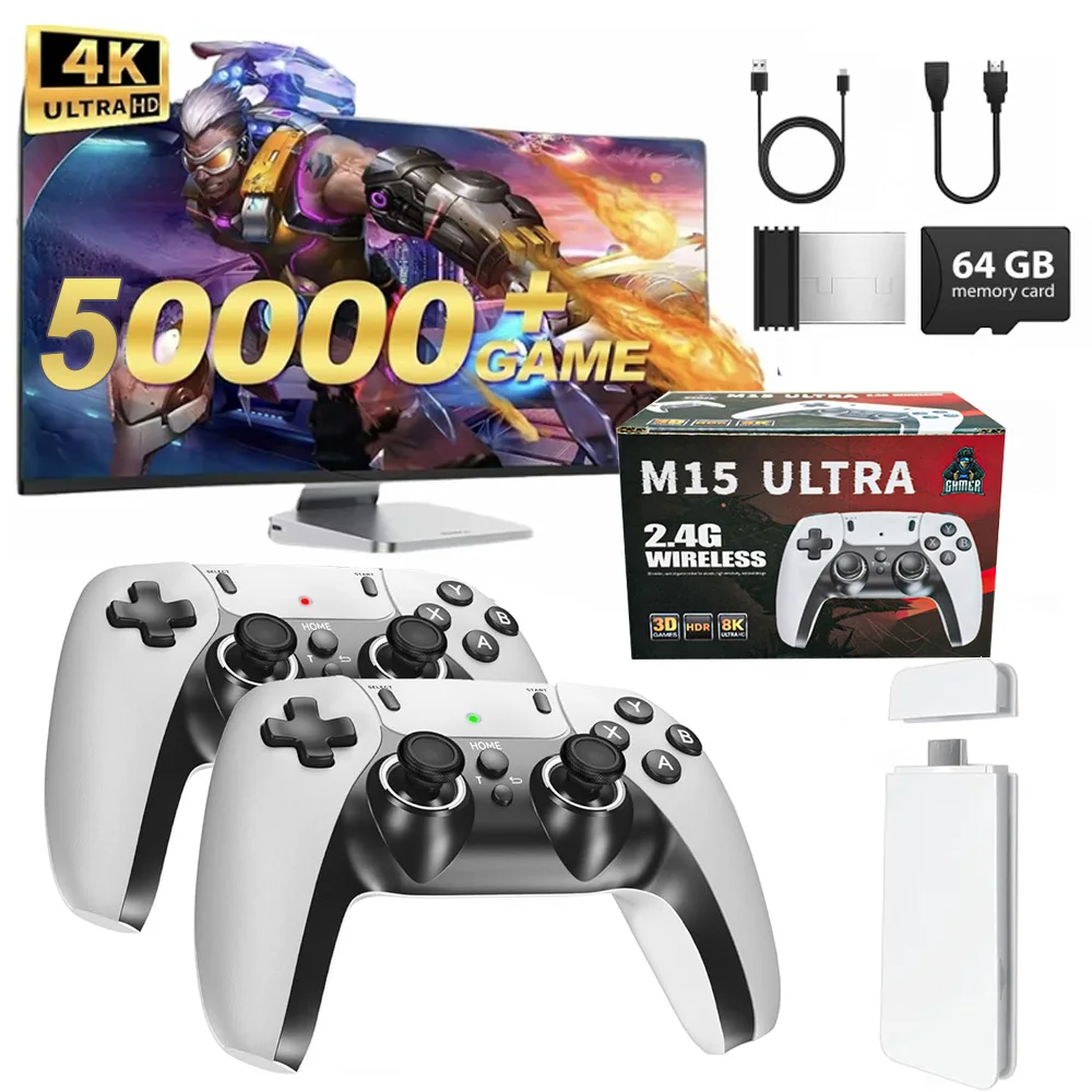 Игры 40000+/50000, игровая консоль M15 Ultra, хранилище 128 ГБ, беспроводной контроллер, выход HD, эмулятор PS1, портативный порт для двух игроков