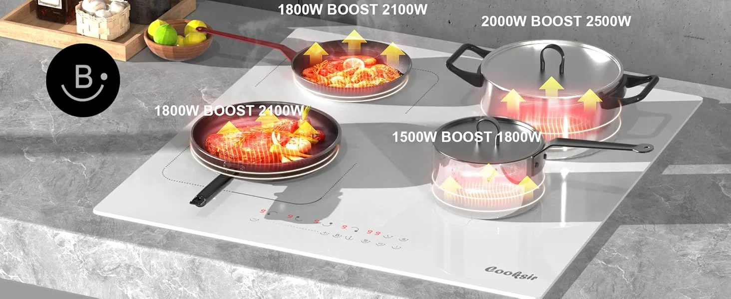 Индукционная табличка 4 Feux Blanc avec Prise, Cooksir Plaque de Cuisson Induction Encastrable, 60 см, 3500 Вт, мини-изображение, 230 В
