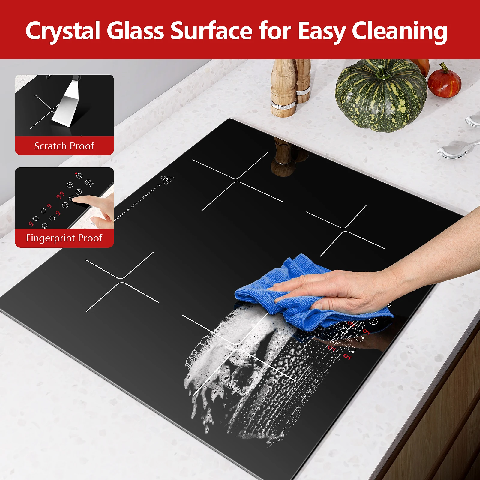 Множественная защитная плита: варочная панель имеет такие функции, как блокировка от детей, таймер 1-99, защита от перегрева благодаря встроенному вентилятору, индикатору остаточного тепла, который идентифицирует каждую зону приготовления с символом «H».Все эти функции могут предотвратить несчастные случаи и обеспечить безопасность всей семьи.