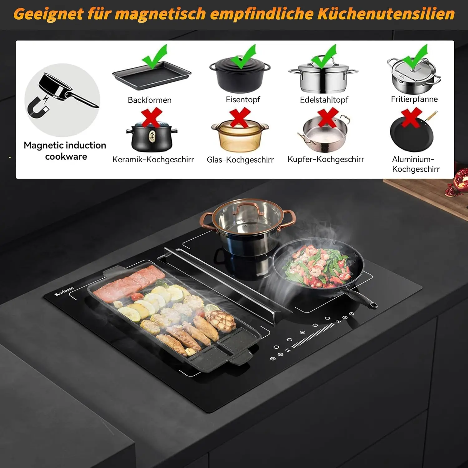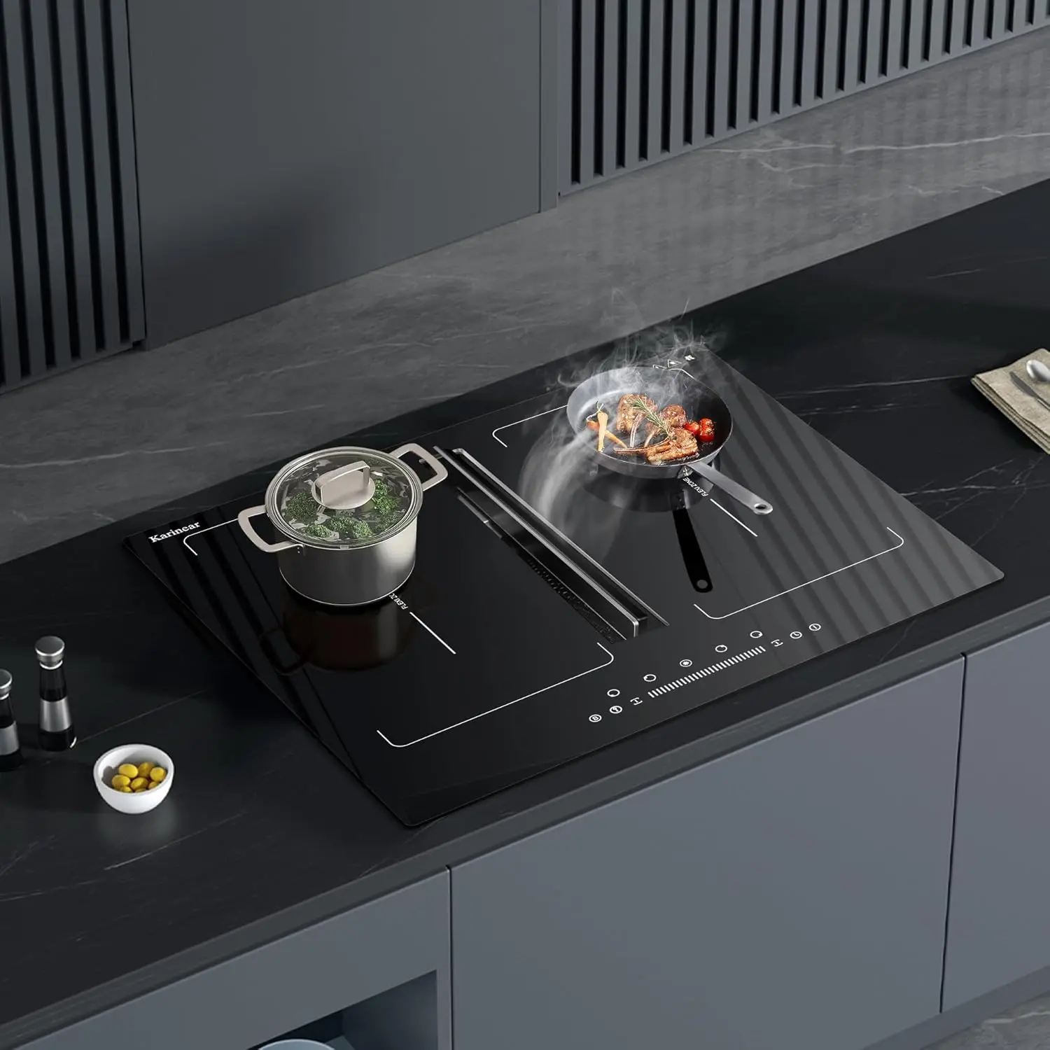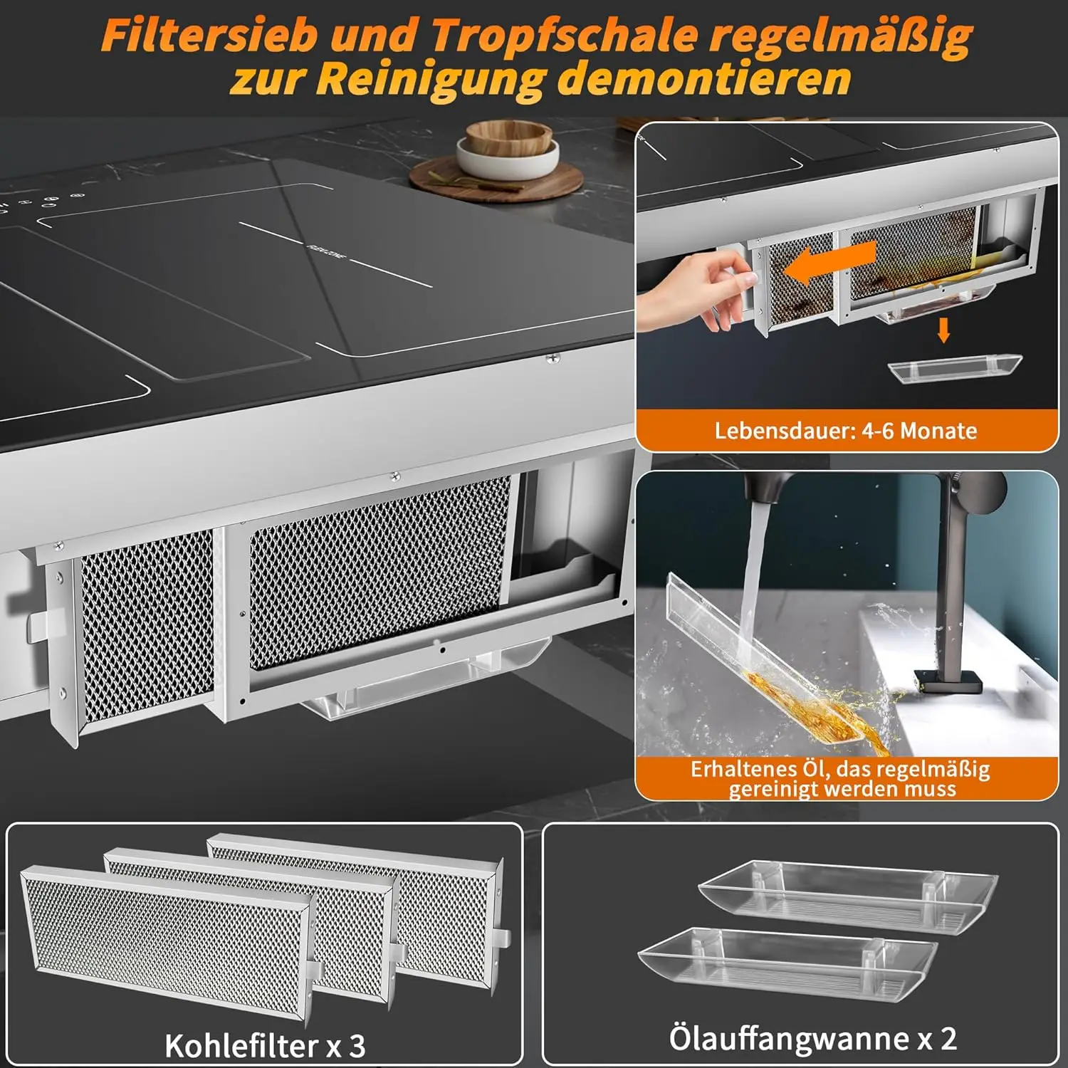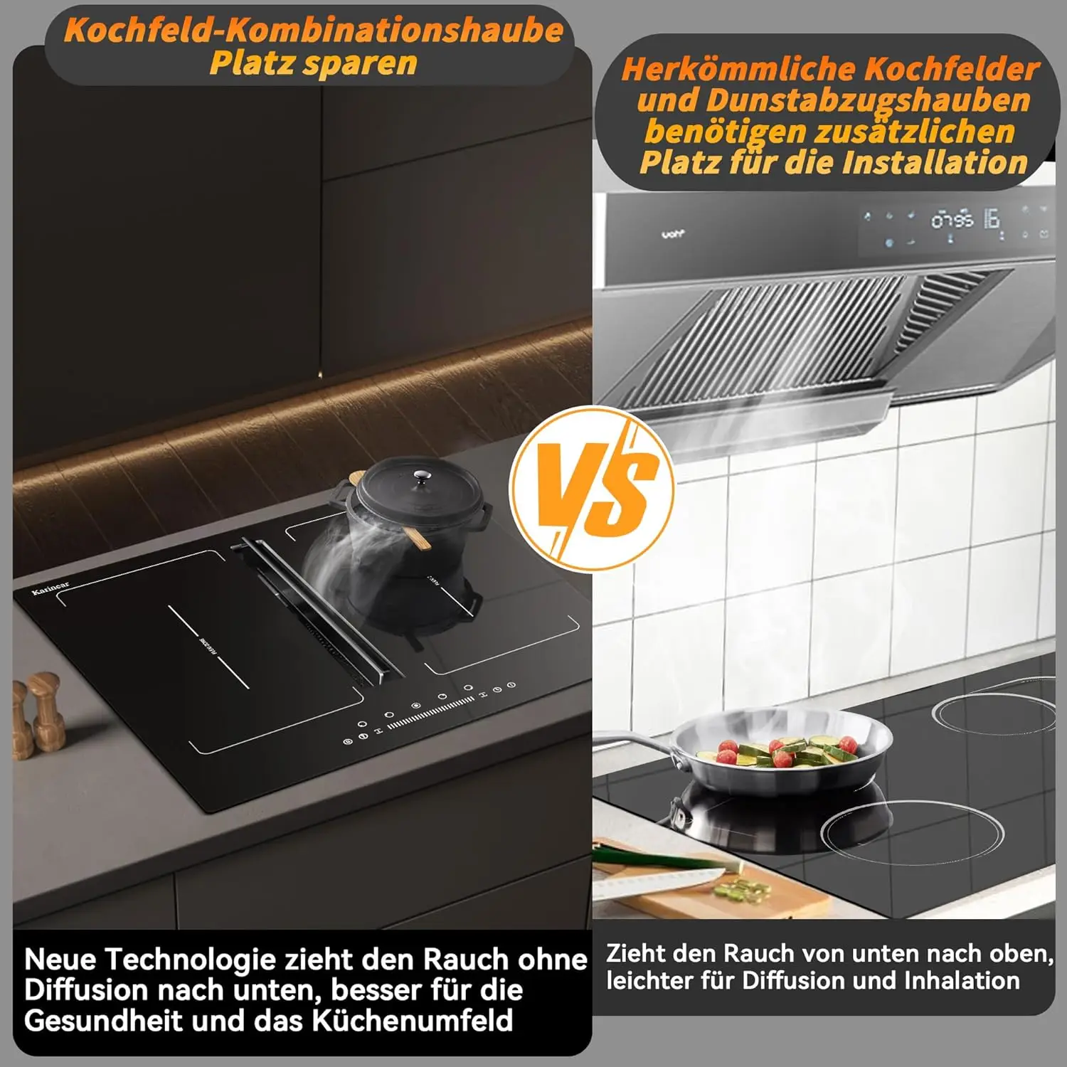 👌 【Инновационная технология】 Этот прибор сочетает в себе 4-зонную индукционную плиту и централизованный экстракторный вентилятор.Идеально подходит для современных кухонь, поскольку сочетает в себе стиль и функциональность в одном приборе.