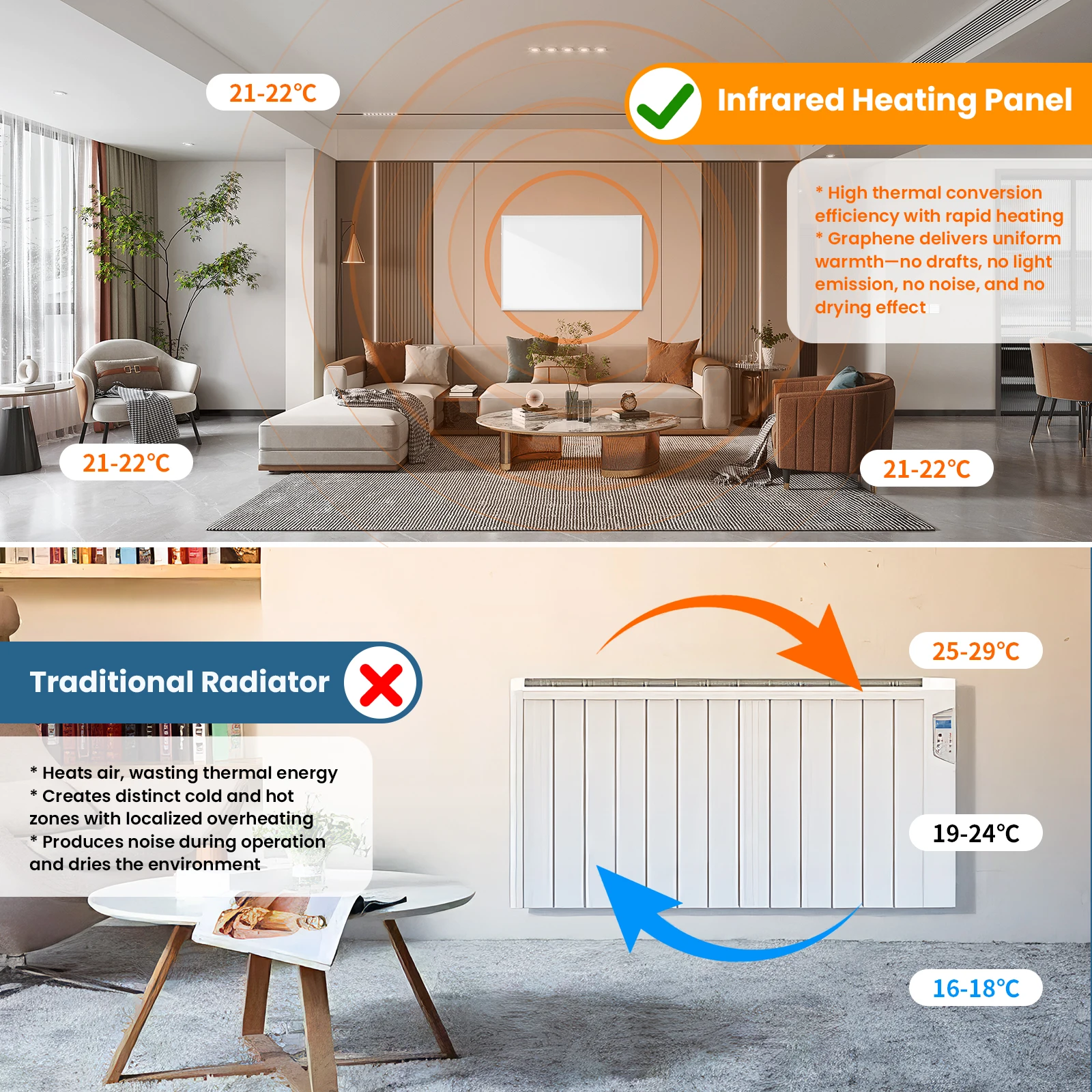 Настенный денежный ящик обеспечивает равномерное распределение тепла, а радиатор обеспечивает равномерное распределение тепла.Идеально подходит для спален, гостиной и многого другого.