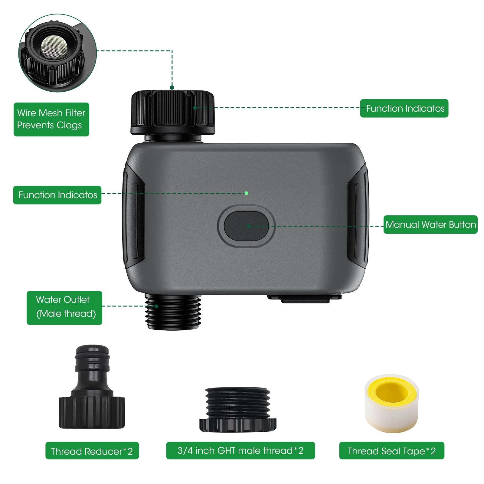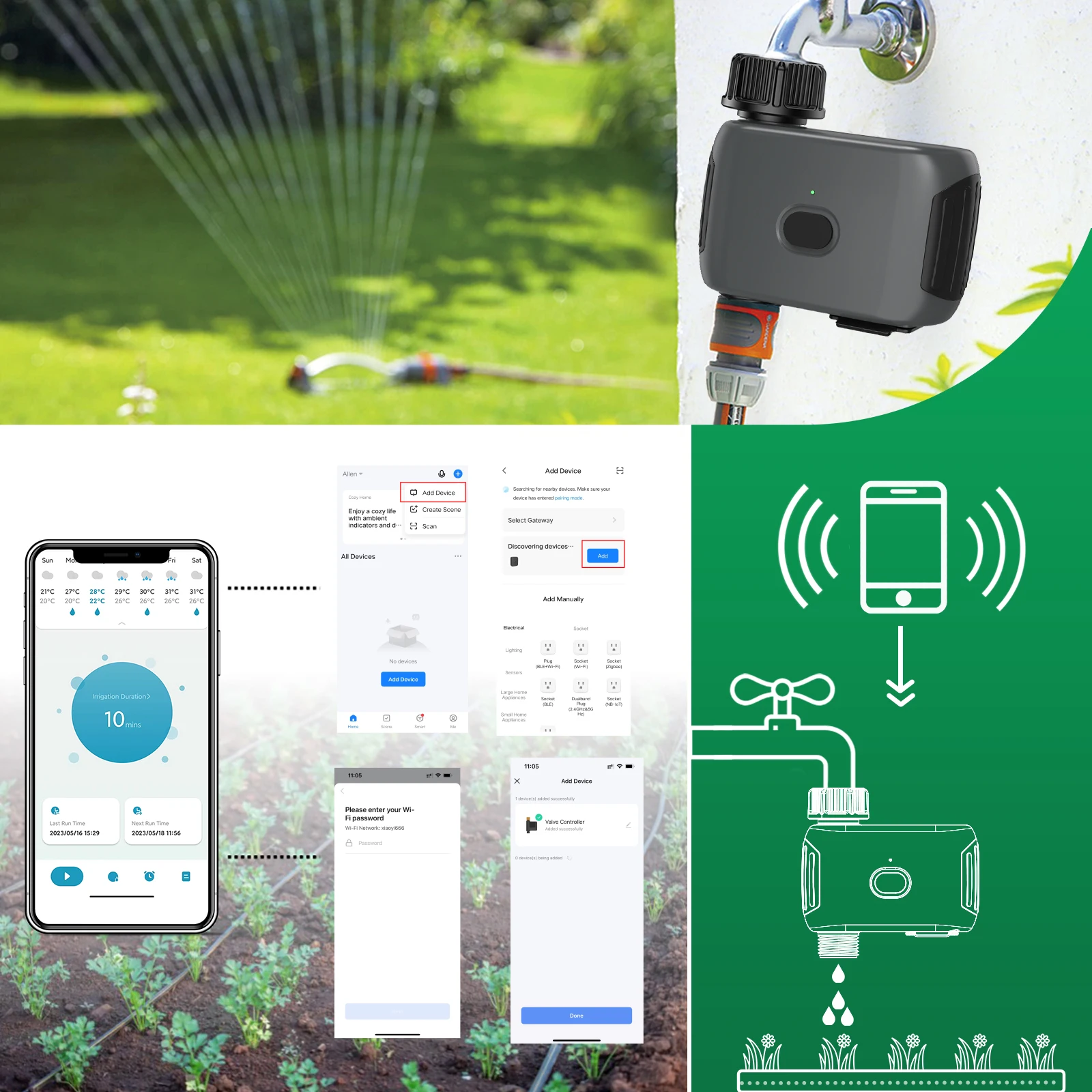 Таймер для воды имеет режим с низким энергопотреблением, который снижает необходимость в дополнительных концентраторах или повторителях.Это обеспечивает стабильное и надежное соединение Wi-Fi 6, поэтому вы можете наслаждаться плавным контролем своей ирригационной системы.Благодаря отзывчивой и надежной системе синхронизации полива вы можете с уверенностью поливать свой сад.