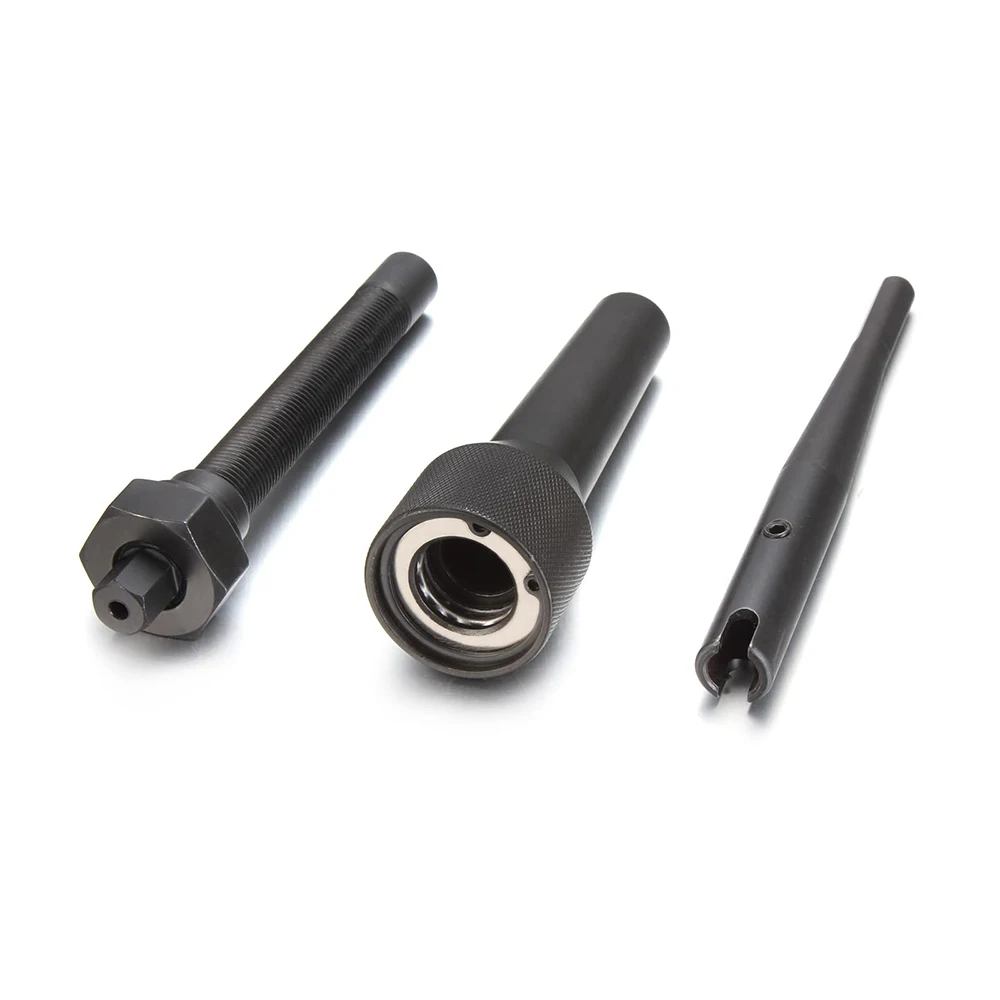 Функция — Нажмите: 1/4 «-28 UNF, M10 X P1.0, М8 х 1.0 Т-образная рукоятка, трещотка, адаптер для удержания дрели, внешний корпус съемника, силовая команда, приводная гайка, инструмент для снятия верхнего соединения Звездная головка, шестигранный ключ, двухразмерная высокопрочная ступенчатая дрель M8 и M10, центрирующие втулки пилотного сверла, пилотные дрели 3.5 мм, оправки адаптера съемника.