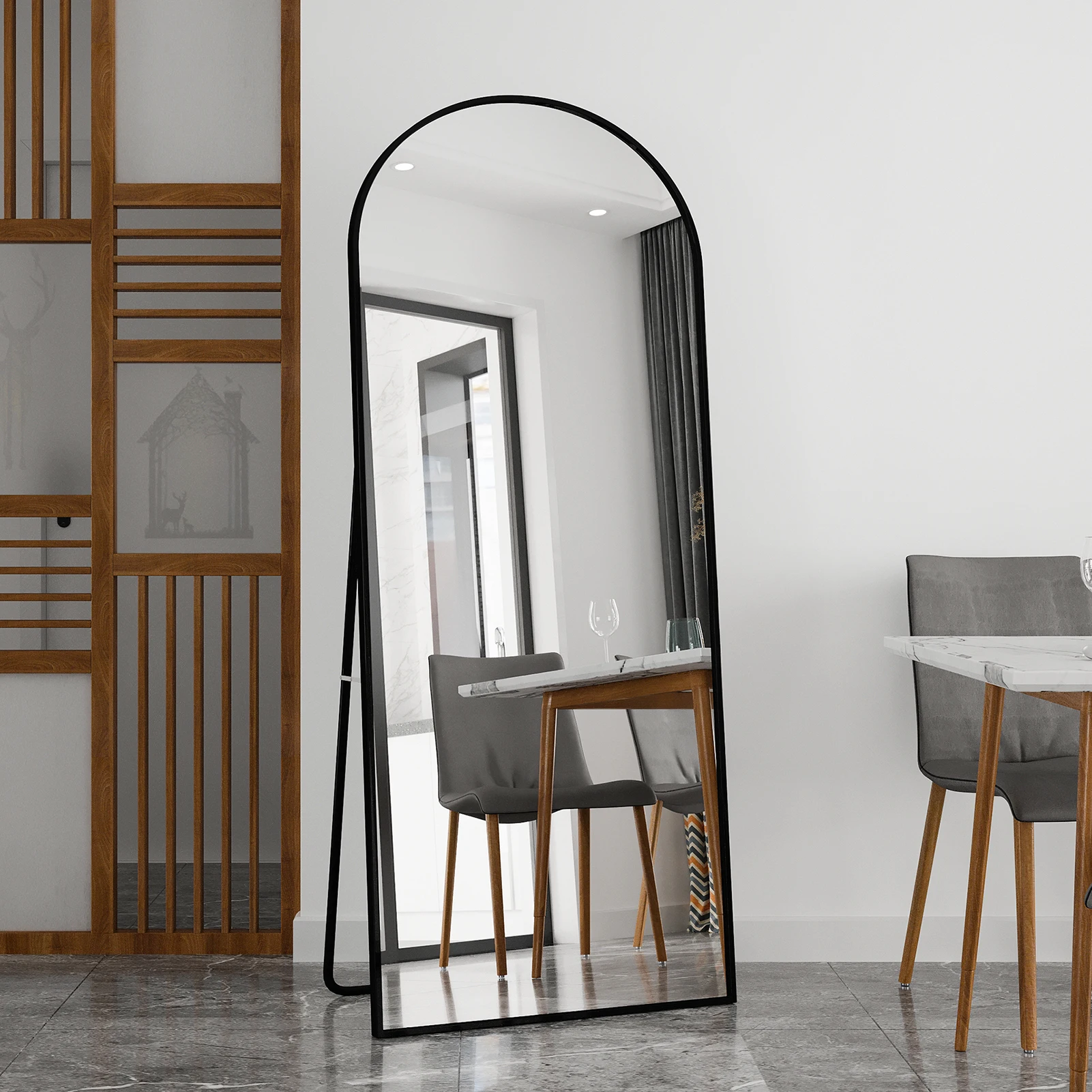 【Стое и настенное зеркало】Независимо от того, хотите ли вы прислонить его к стене, свободно поставить или закрепить на стене с помощью шурупов, наше большое зеркало удовлетворит все ваши потребности.Кронштейн на спине обеспечивает превосходную поддержку и устойчивость, идеально вписываясь в современный домашний декор.