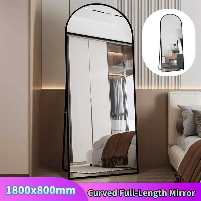Изогнутое стоящее зеркало Comanlai 180 × 80 см, зеркало в полный рост, напольное зеркало с закаленным стеклом и рамой из алюминиевого сплава, черное