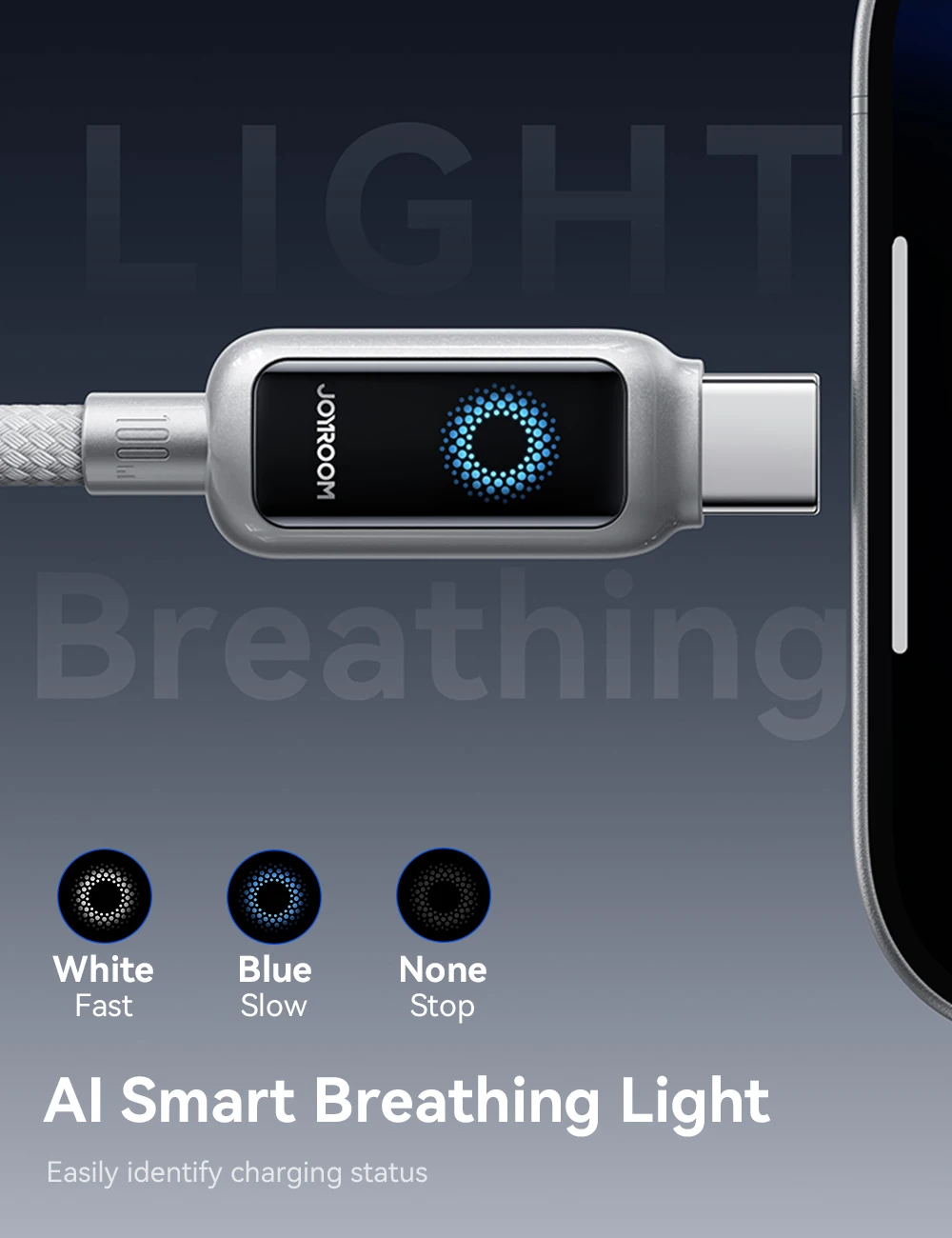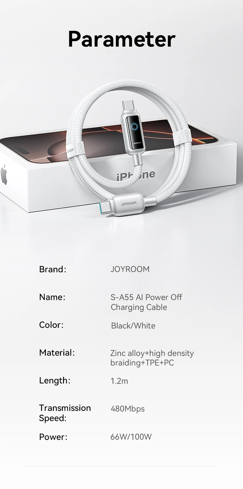 Joyroom Кабель для быстрой зарядки, 100 Вт, 1,2 м, кабель USB Type-C к Type-C с автоматическим отключением питания для IPhone, Xiaomi, Samsung, OPPO VIVO