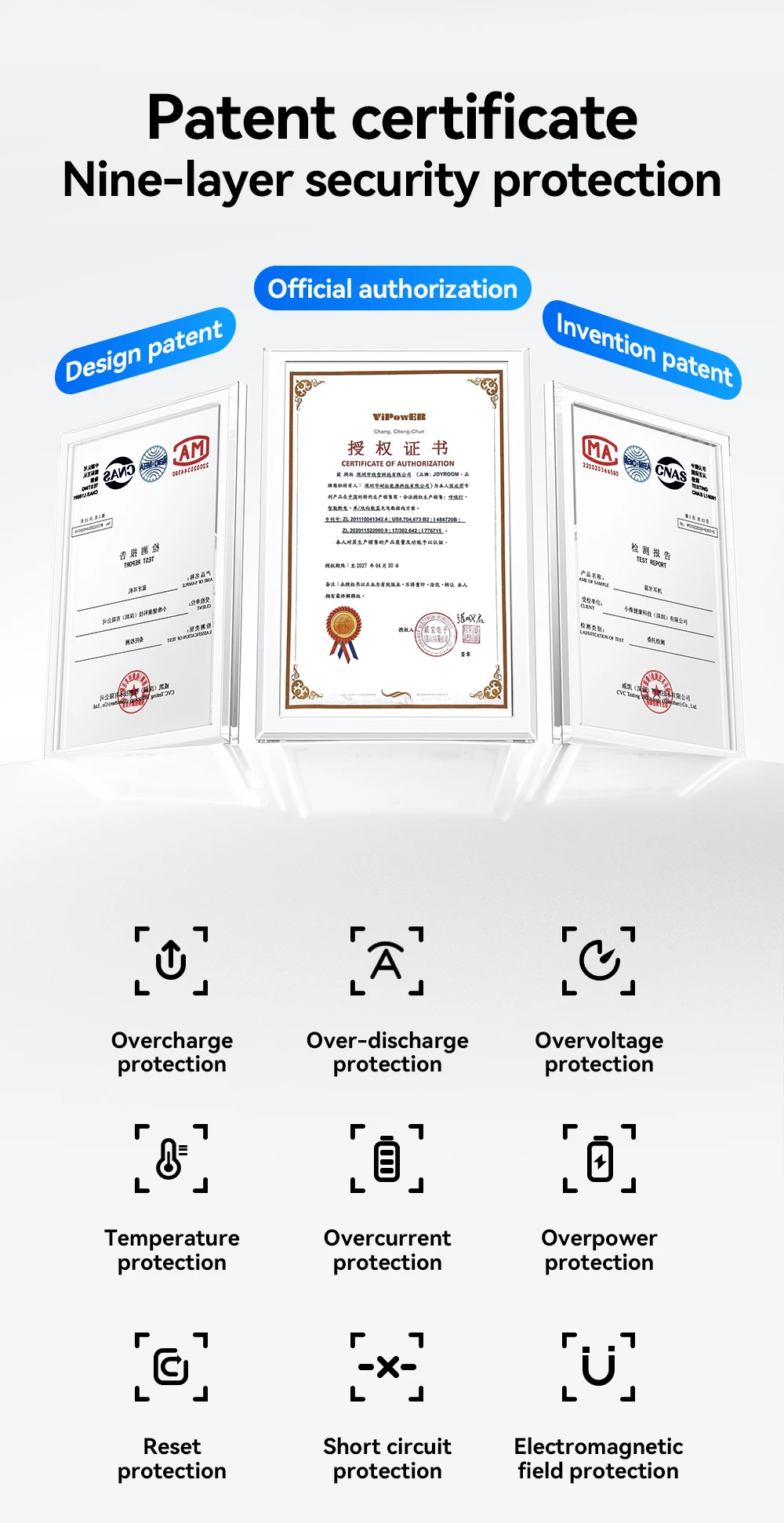 Автоматически отключается при полной зарядке, защищая аккумулятор вашего телефона и обеспечивая более безопасную зарядку в ночное время. (30-45 минут после полной зарядки аккумулятора функция защиты автоматически включается и питание отключается.)
