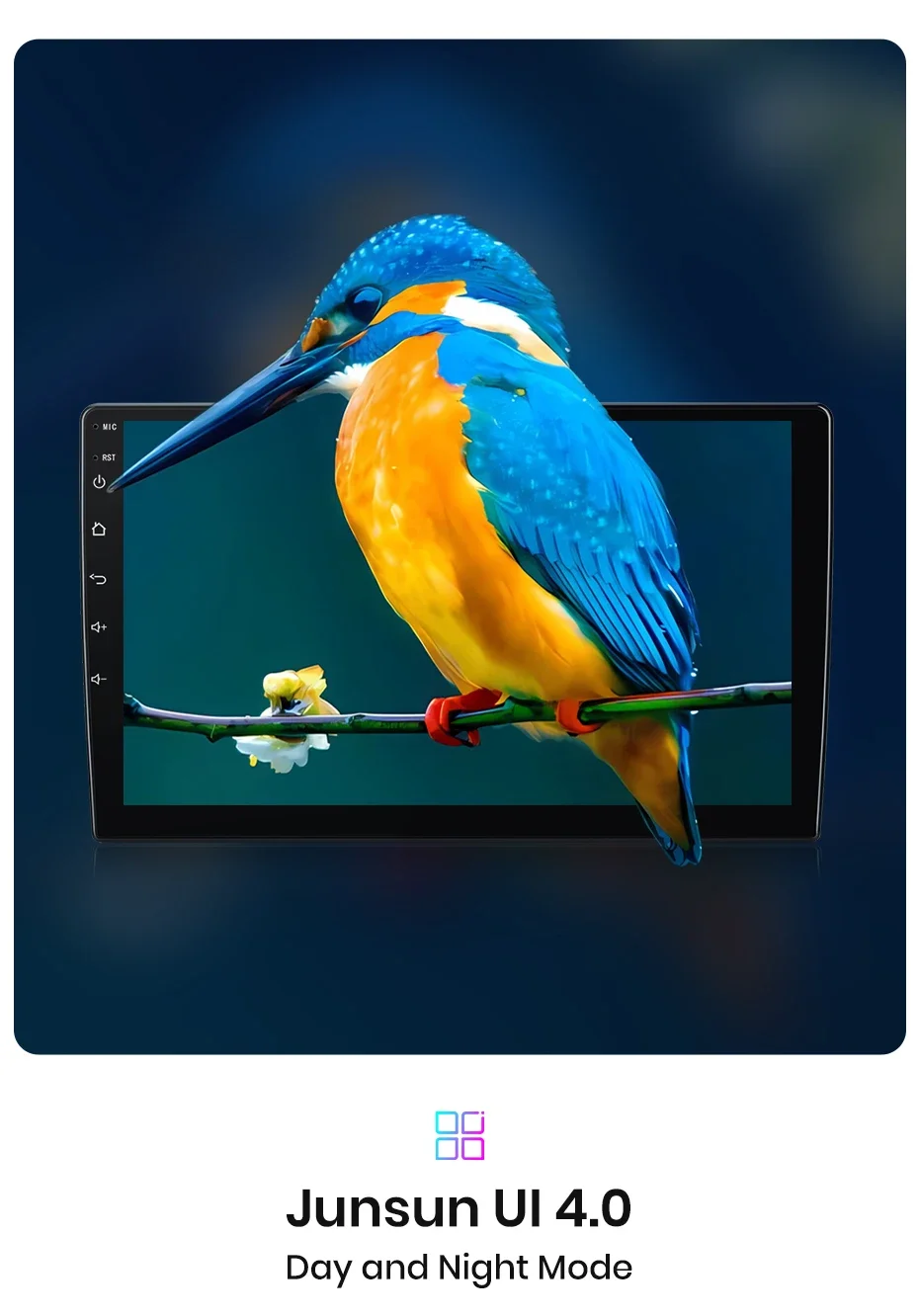 【IPS Display Car Head Unit】The screen is upgraded to IPS with resolution of 1280*720, which brings better color accuracy, contrast,and brightness. Enjoy immersive visual experience and easy operation on the 9/10 Inch big screen. Comes with Junsun UI themes that you can choose from, support day and night model, provide you a safer & comfortable driving experience especially at night.
