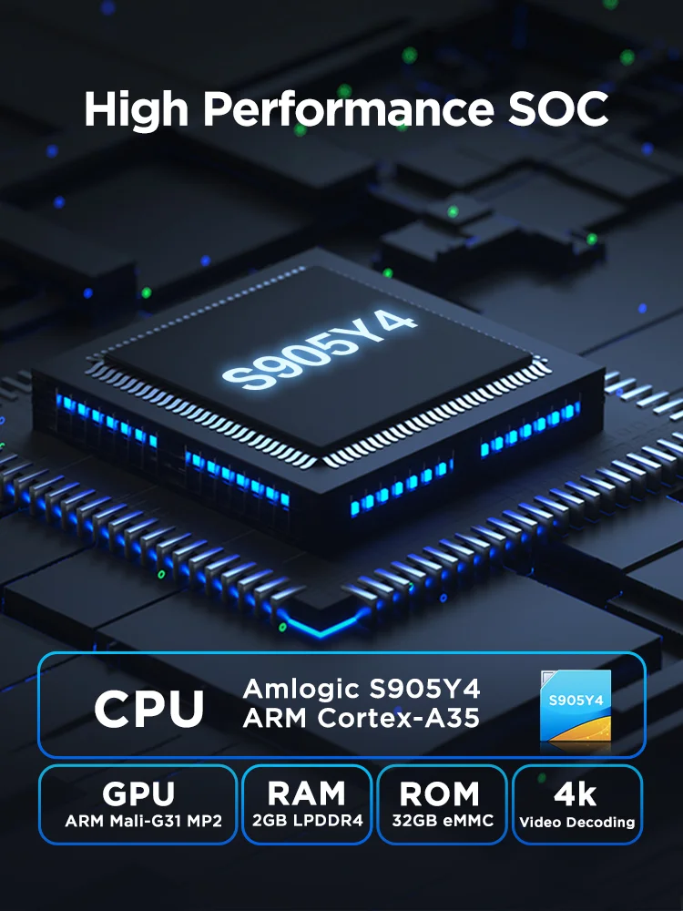 1.ЦП:Четырехъядерный процессор Amlogic S905Y4 ARM Cortex A35