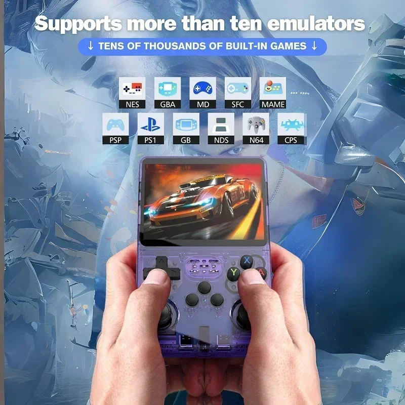 Разработанный для удобства, легкий и небольшой форм-фактор R36S, а также защитный чехол делают его идеальным для путешествий и игр на ходу.
