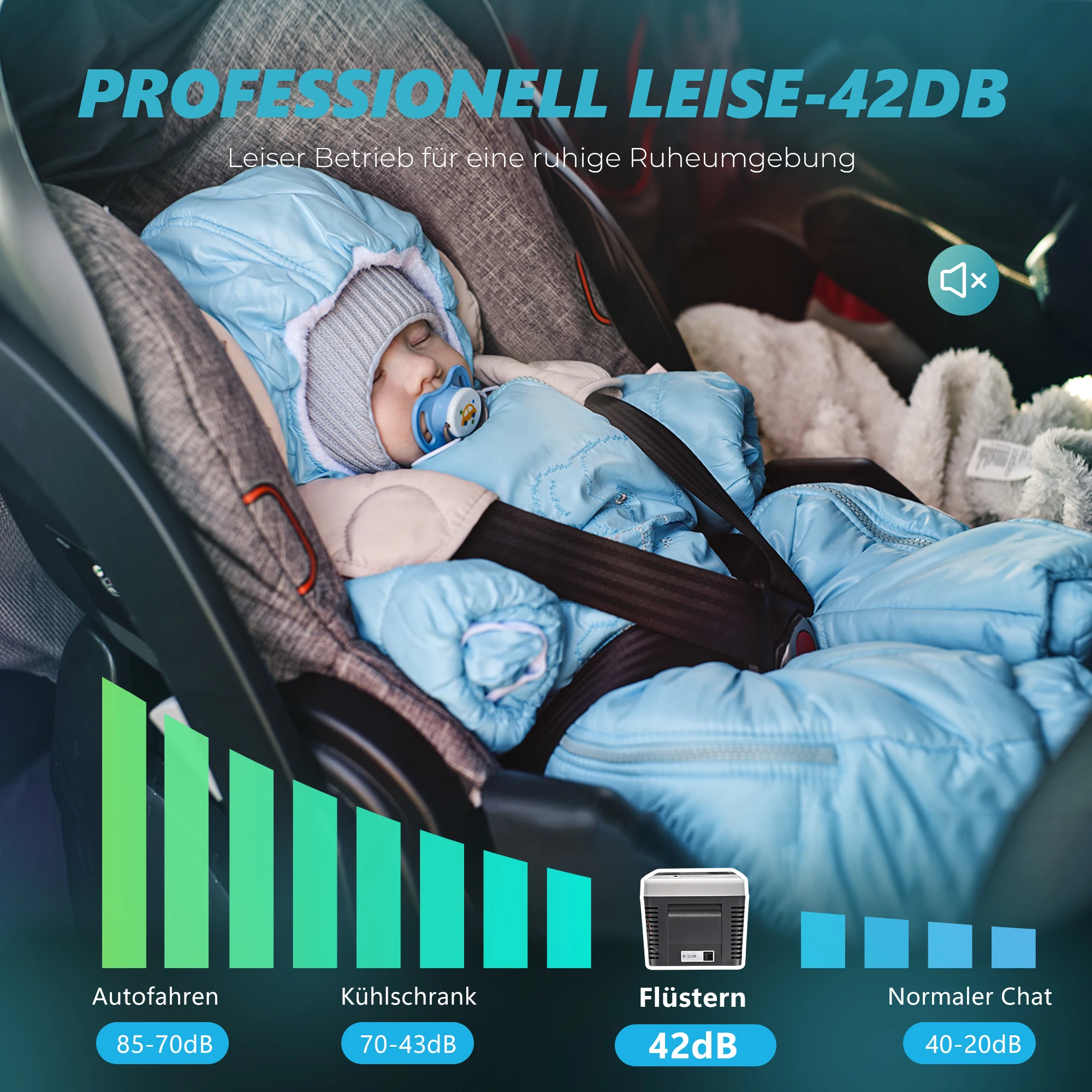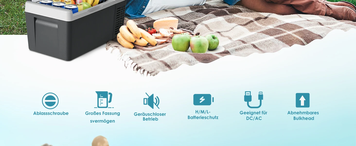 【Бесшумная и противоударная конструкция】 Автомобильный холодильник на 12 В работает с малошумной системой охлаждения, работающей всего 42 децибела, обеспечивая спокойную и комфортную среду.Этот портативный холодильник на 12 В, разработанный с использованием противоударной технологии, работает плавно даже на ухабистых дорогах с наклоном до 30 градусов.