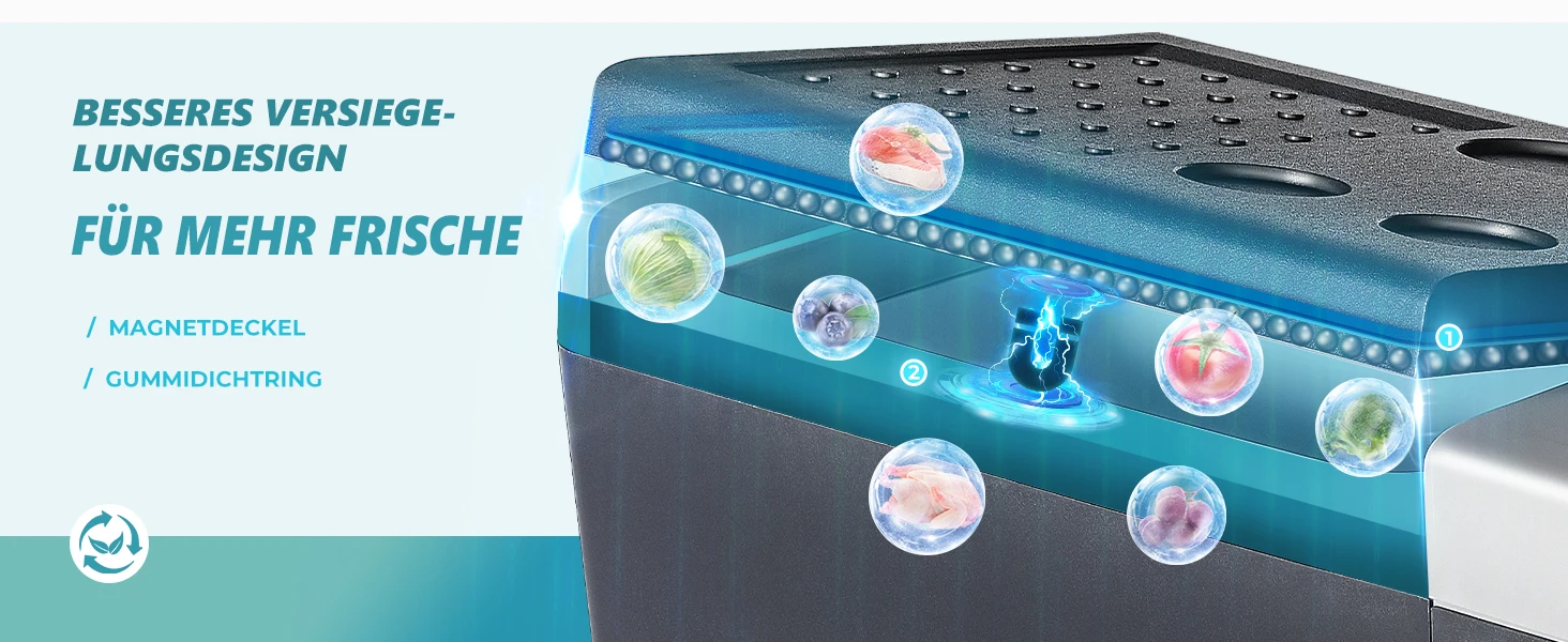 【Конструкция магнитного уплотнения и отличная теплоизоляция】 Крышка холодильника 12 В имеет уникальную магнитную конструкцию, которая обеспечивает плотное уплотнение резиновой прокладки, увеличивая время изоляции и повышая эффективность охлаждения.Магнитная открывающаяся крышка портативного холодильника предназначена для частого использования, обеспечивая удобство, долговечность и надежность во время путешествий.
