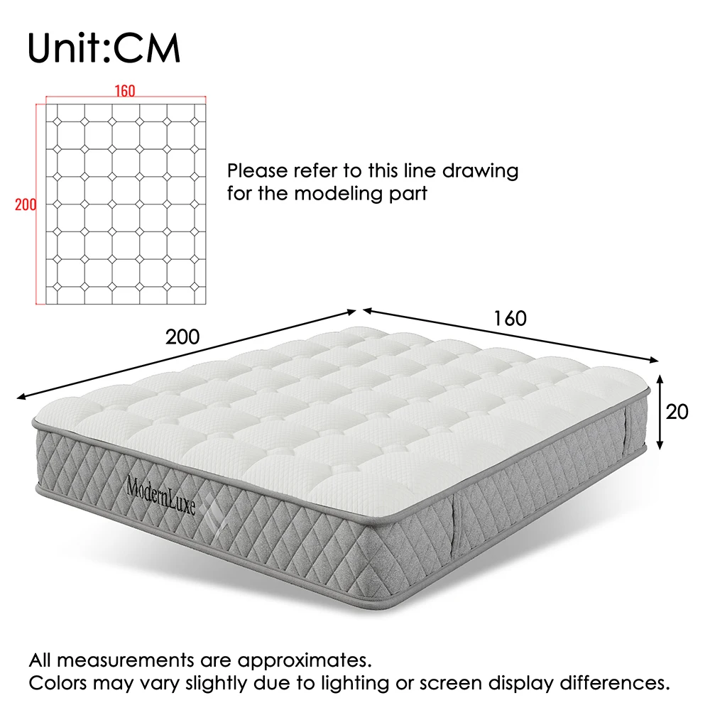 KOMHTOM Ортопедический матрас из холодной пены с 7-зонным пружинным сердечником, твердость H3 (средний твердый), высота 20 см.