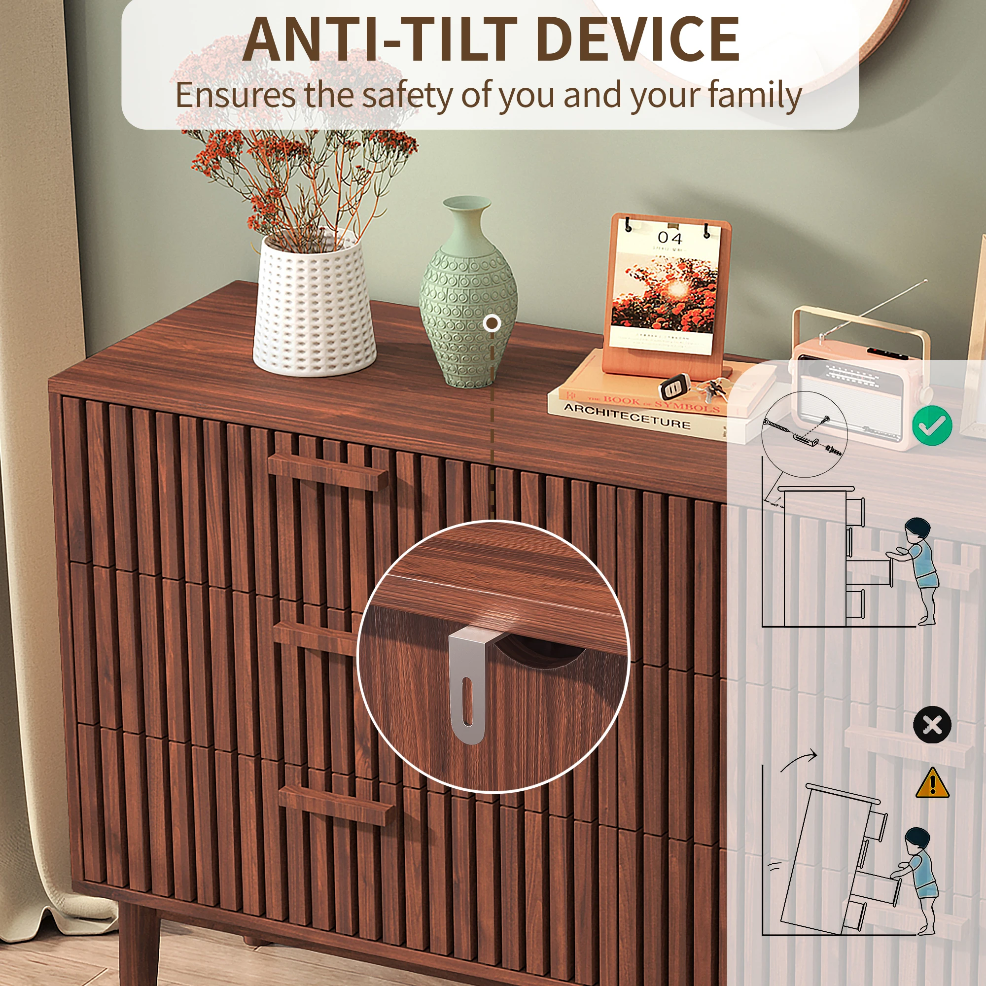 4.Изысканное мастерство деталей: конструкция ручки ящика проста, а открытие и закрытие плавное, не застревая; Дно имеет конструкцию с высокой ножкой, которую легко чистить и предотвращает накопление пыли и влаги.Детали подчеркивают качество.