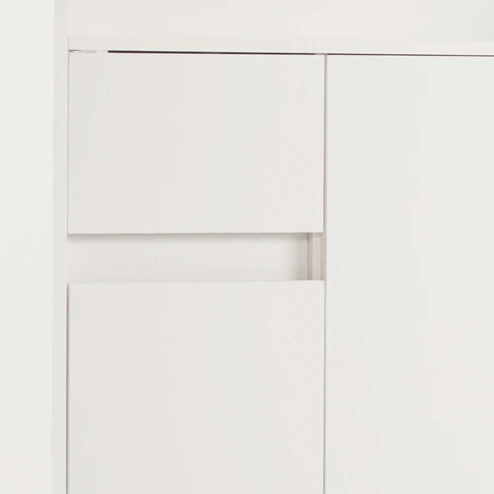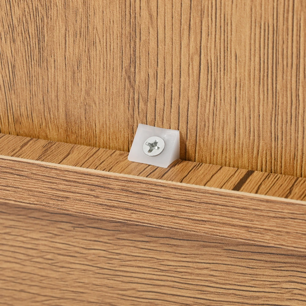 - Безопасность: используется высококачественная фурнитура и ДСП.Петли оснащены функцией демпфирования, позволяющей избежать застревания пальцев при открытии и закрытии.Входящий в комплект комплект защиты от наклона можно надежно закрепить на стене для дополнительной устойчивости и беспроблемного использования.