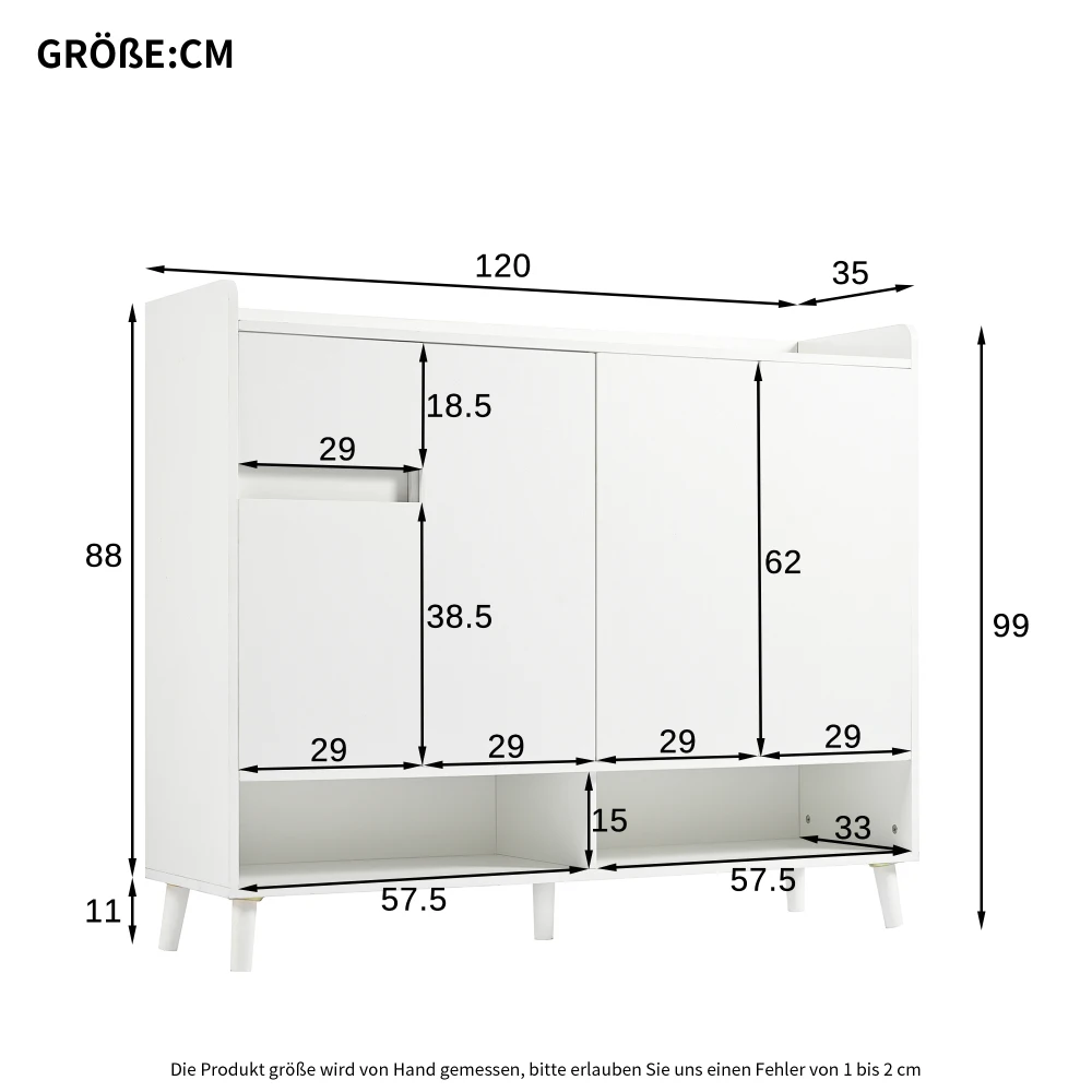 Комод-сервант для обуви с большим пространством для хранения, 4-дверный для столовой, гостиной, размеры: 120*99*35 см.