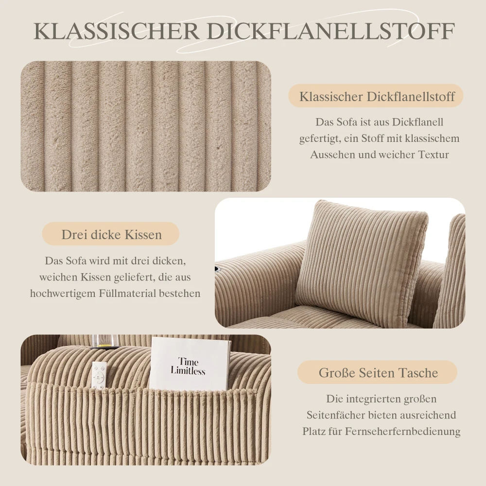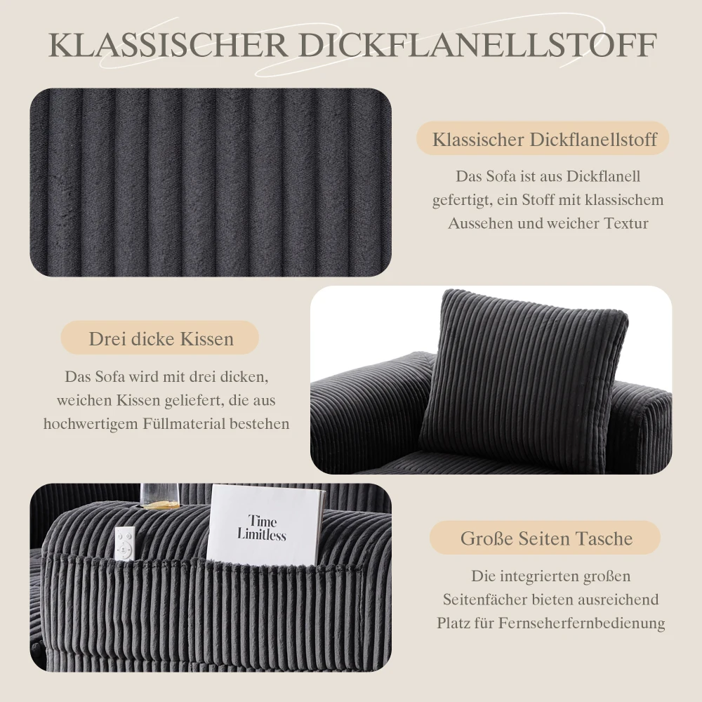Классический и неподвластный времени дизайн: диван сочетает в себе классический толстый фланелевой дизайн с современными функциями.Простая, более элегантная форма и нейтральные цветовые решения делают его вневременным и универсальным.Он не стареет быстро и может подарить вашему объекту теплую, уютную атмосферу на долгие годы – долгосрочную инвестицию в ваш дом.