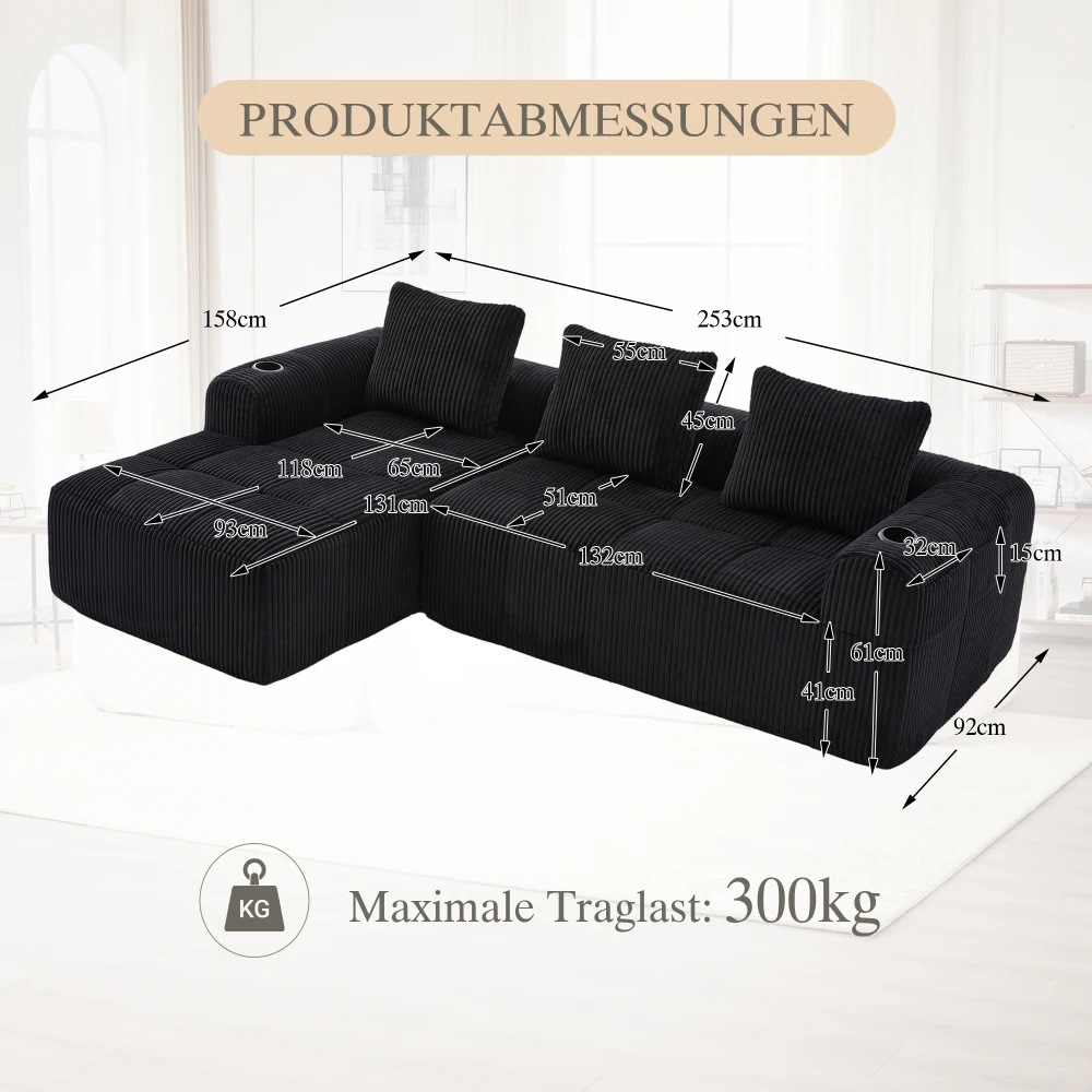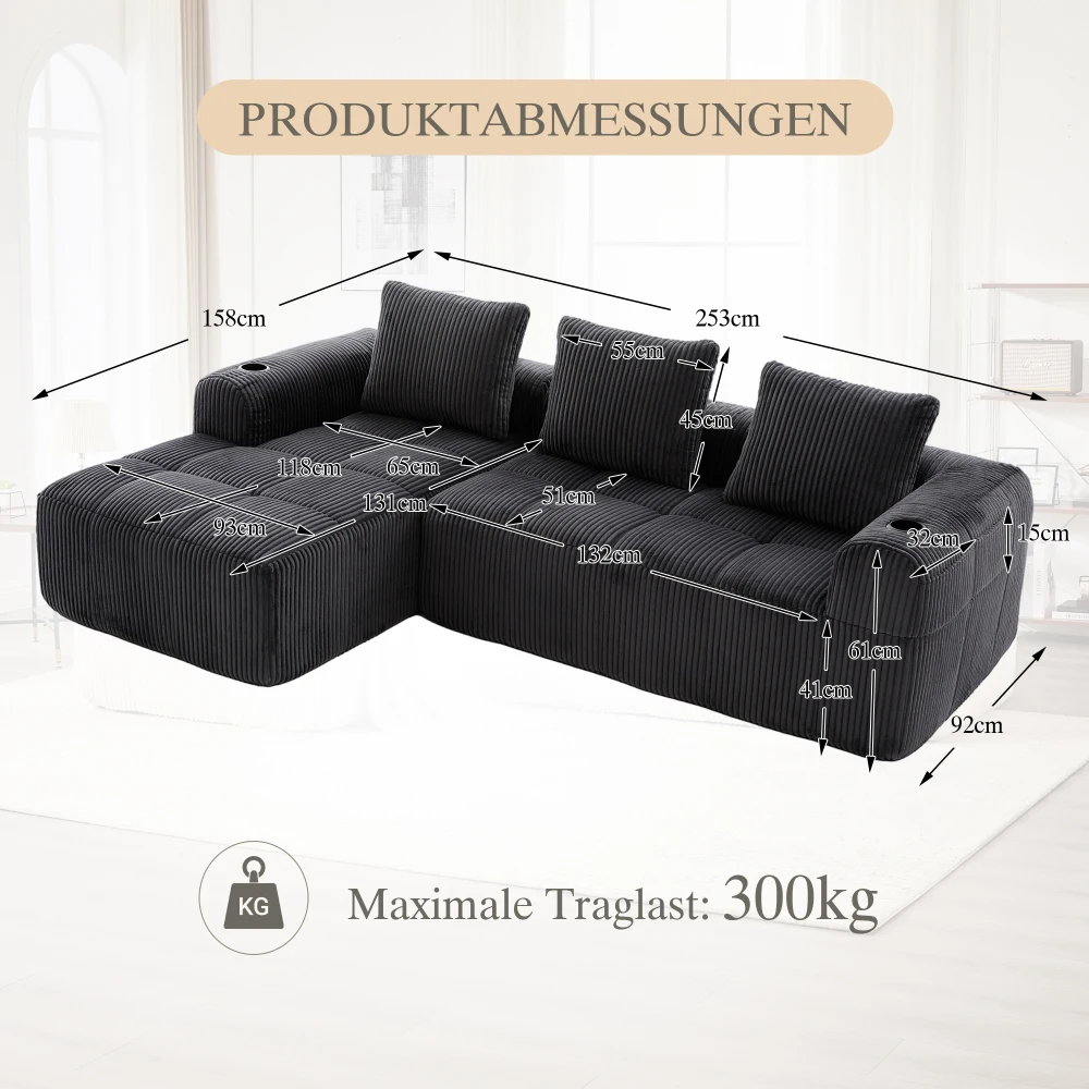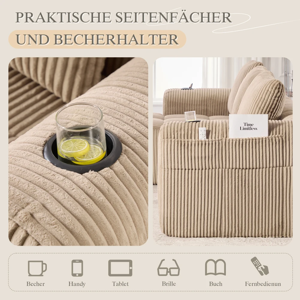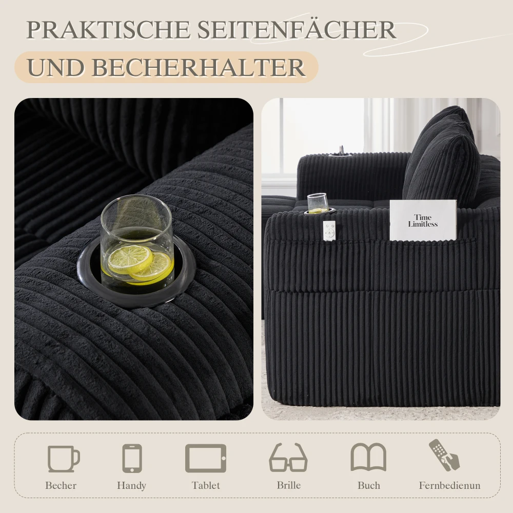 Компактный мягкий диван, модульный диван с боковым карманом и держателем для напитков, высококачественный комфорт для длительного сидения, вкл. Подушки