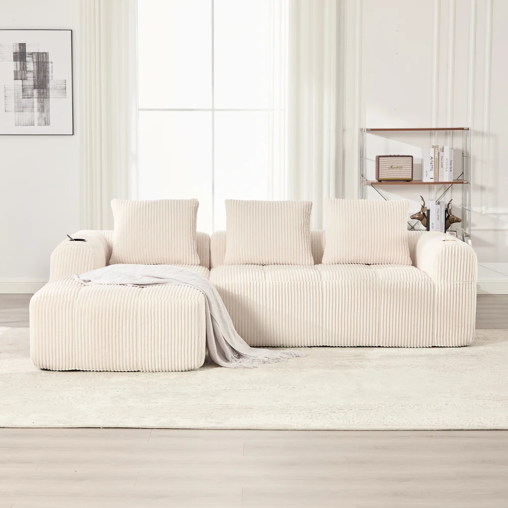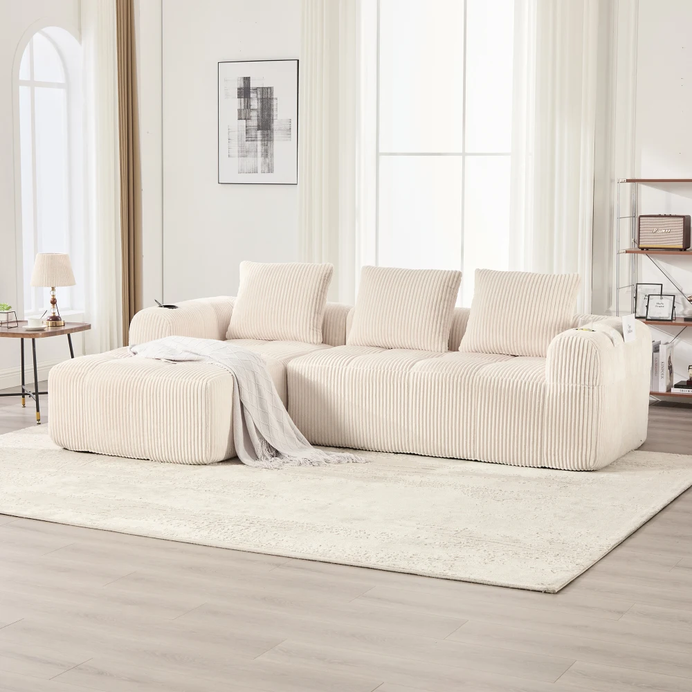В комплект входят три толстых подушки: В комплект дивана входят три толстых мягких подушки из высококачественного наполнителя.Их можно использовать в качестве подголовника, спинки или подушки для коленей для дополнительного комфорта.Нейтральные цвета сочетаются с плотной фланелевой тканью и легко сочетаются с другими украшениями.