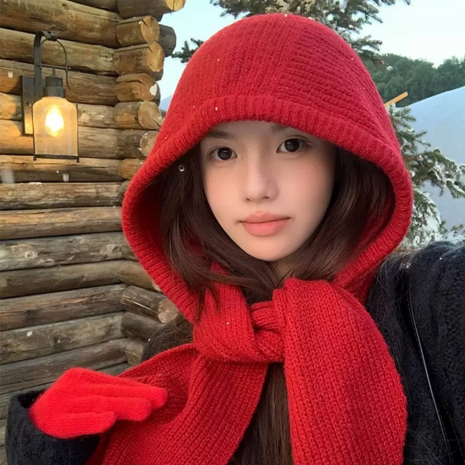 Корейская Балаклава, женские шапочки Skullies, шапка, шарф, цельная утолщенная теплая защита шеи, зимние аксессуары, вязаное право