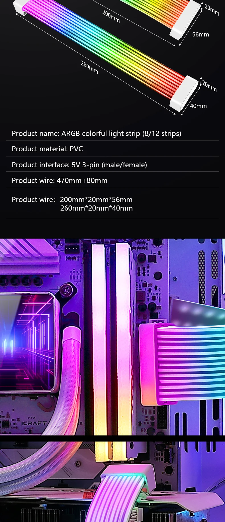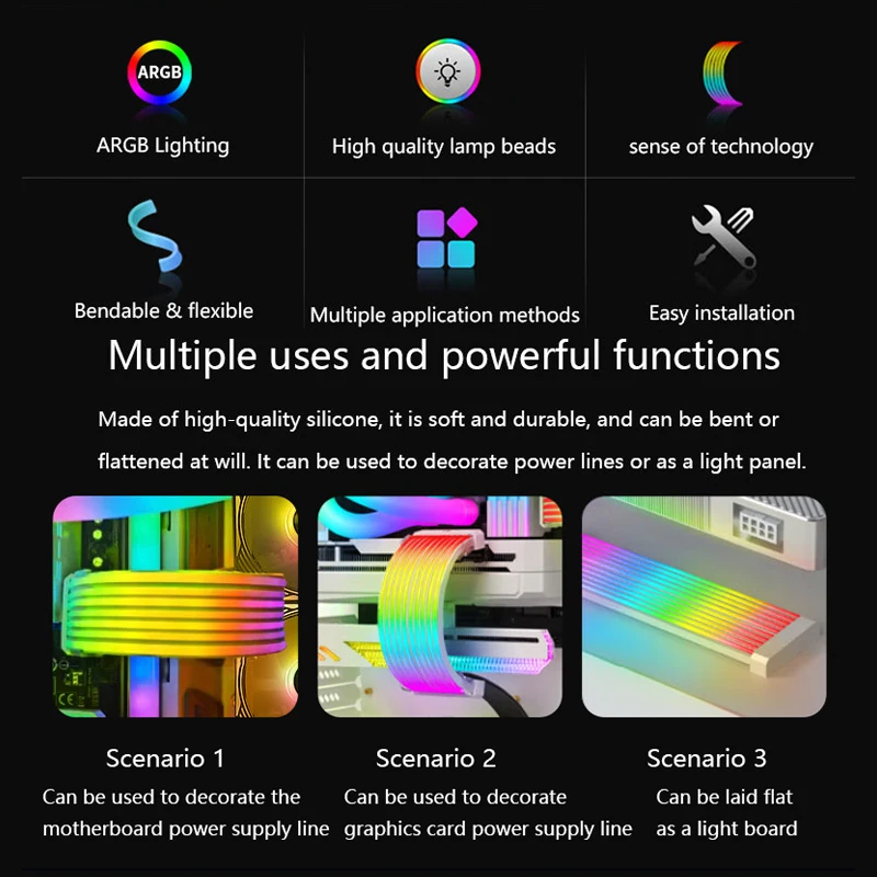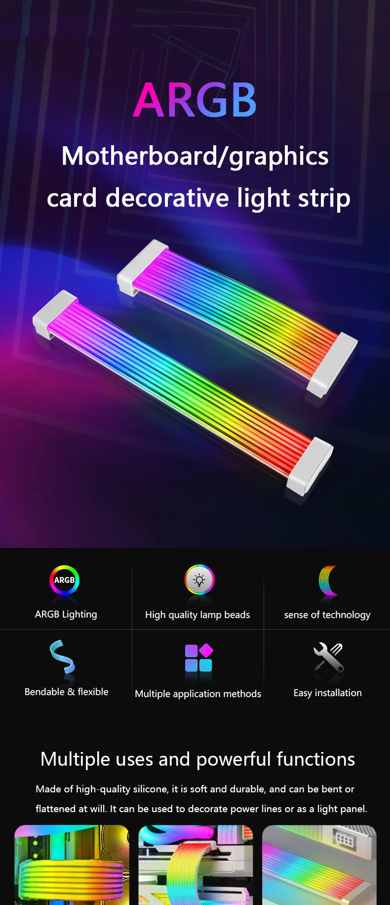 Корпус компьютера, гибкая световая панель ARGB, подходит для видеокарты, 24 контакта/8 контактов/2×8 контактов/12VHPWR/материнская плата, декоративная световая полоса