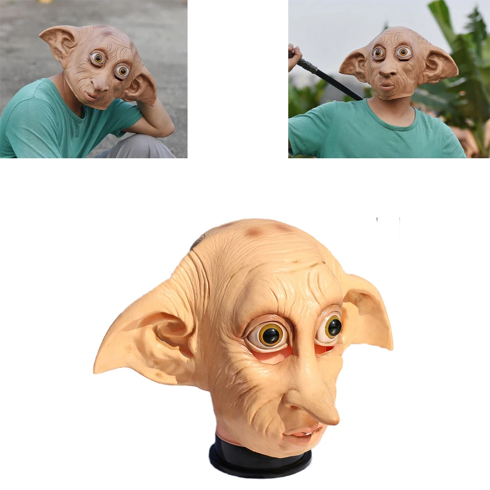 Косплей Персонаж фильма Большое ухо Длинный нос Добби Голова эльфа Забавная маска на Хэллоуин Анфас Головной убор Карнавальный костюм для вечеринки Опора