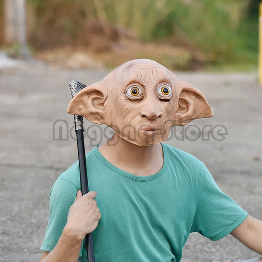big ear long nose Elf cosplay Dobby cute movie character film role full face eye mouth head Realistic Mardi gras funny halloween mask adults women men unisex retro christmas head latex helmet carnival themed party mask headgear decorations accessories costume Hero man