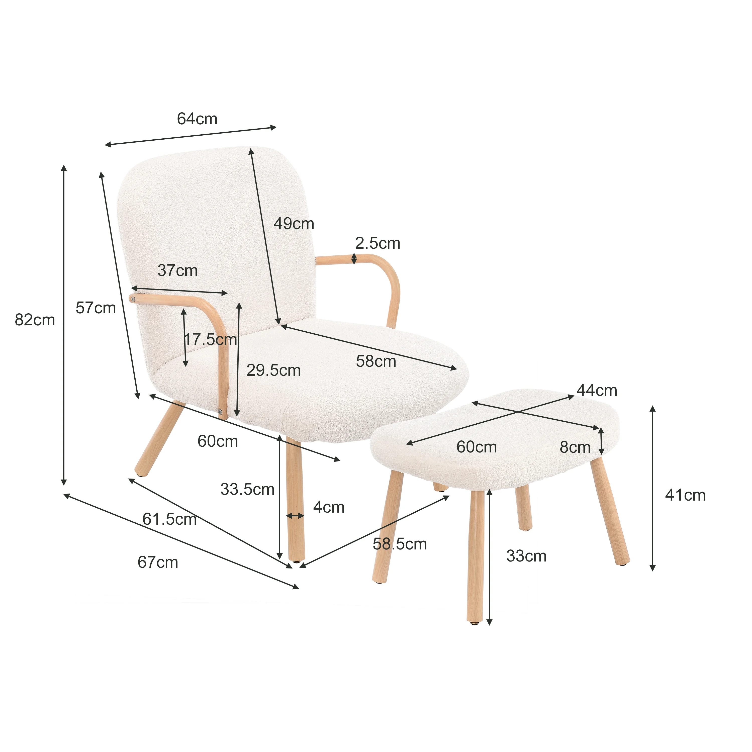 Материал изделия: дерево + плюшевый флис / длинноволосый кашемир / овечья шерсть + металл