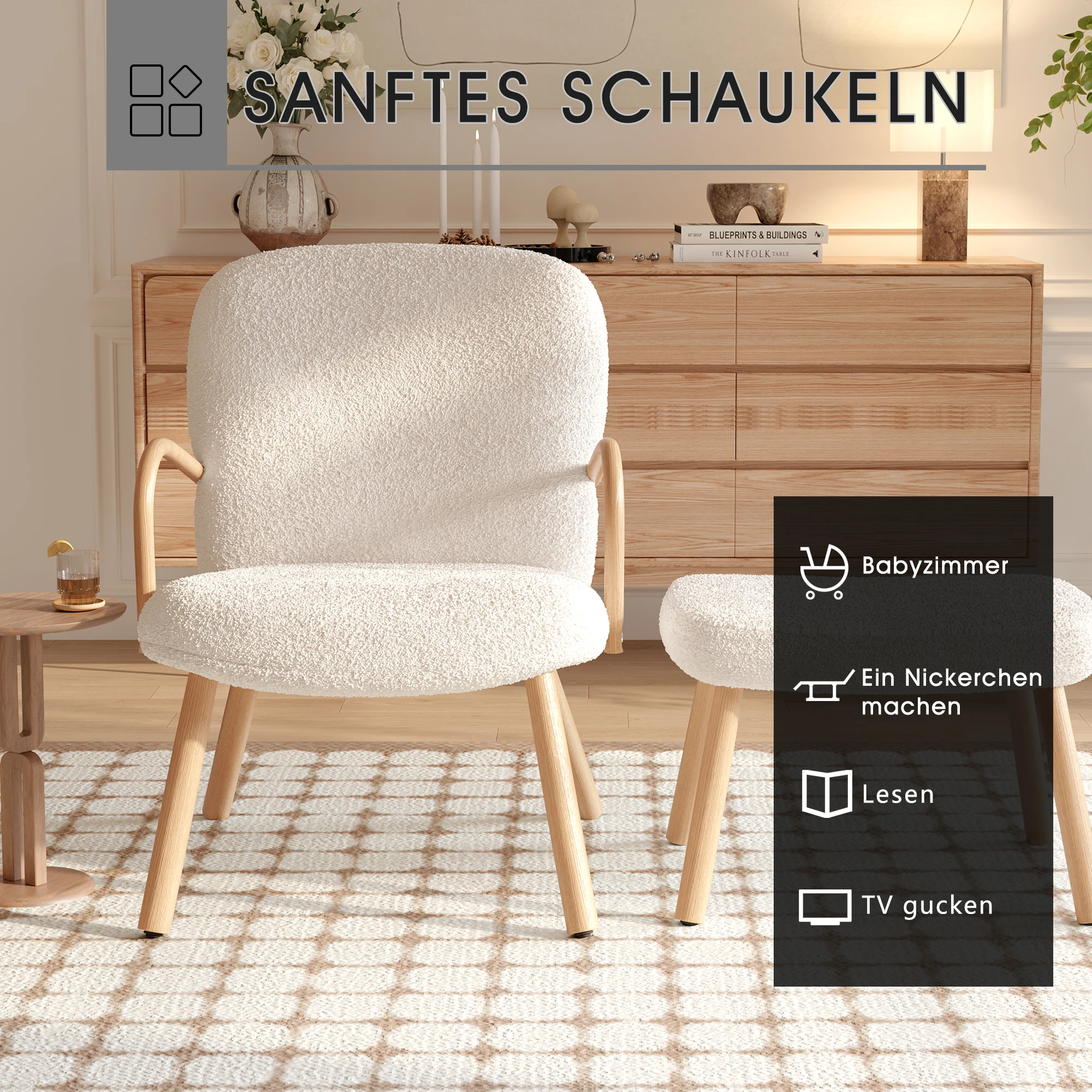 Кресло Anajqaqia, кресло-качалка с подставкой для ног и подголовником, для гостиной, спальни и балкона, белый/бежевый