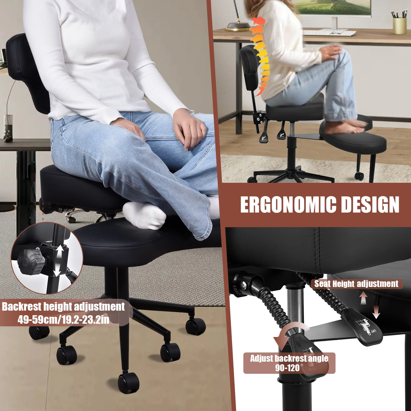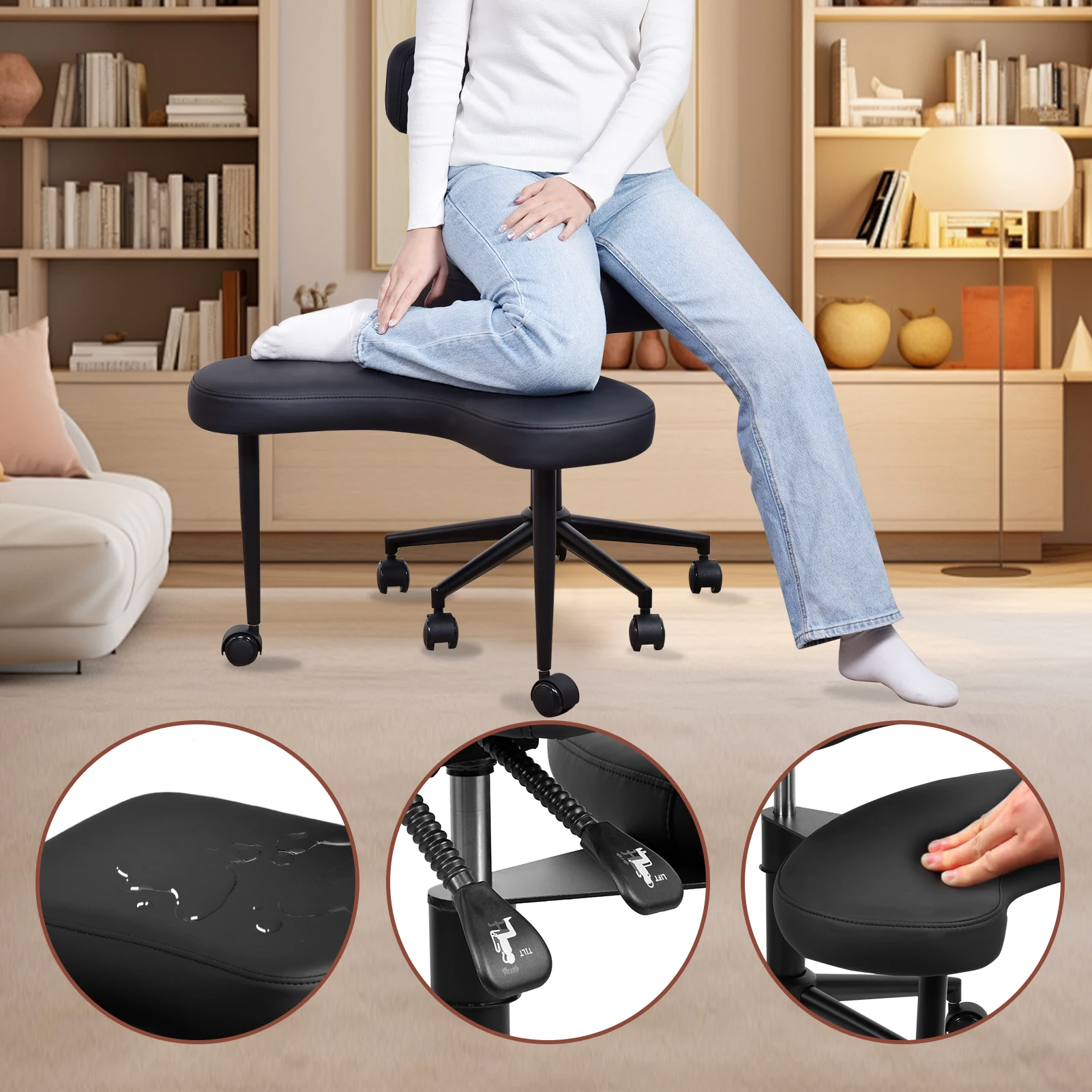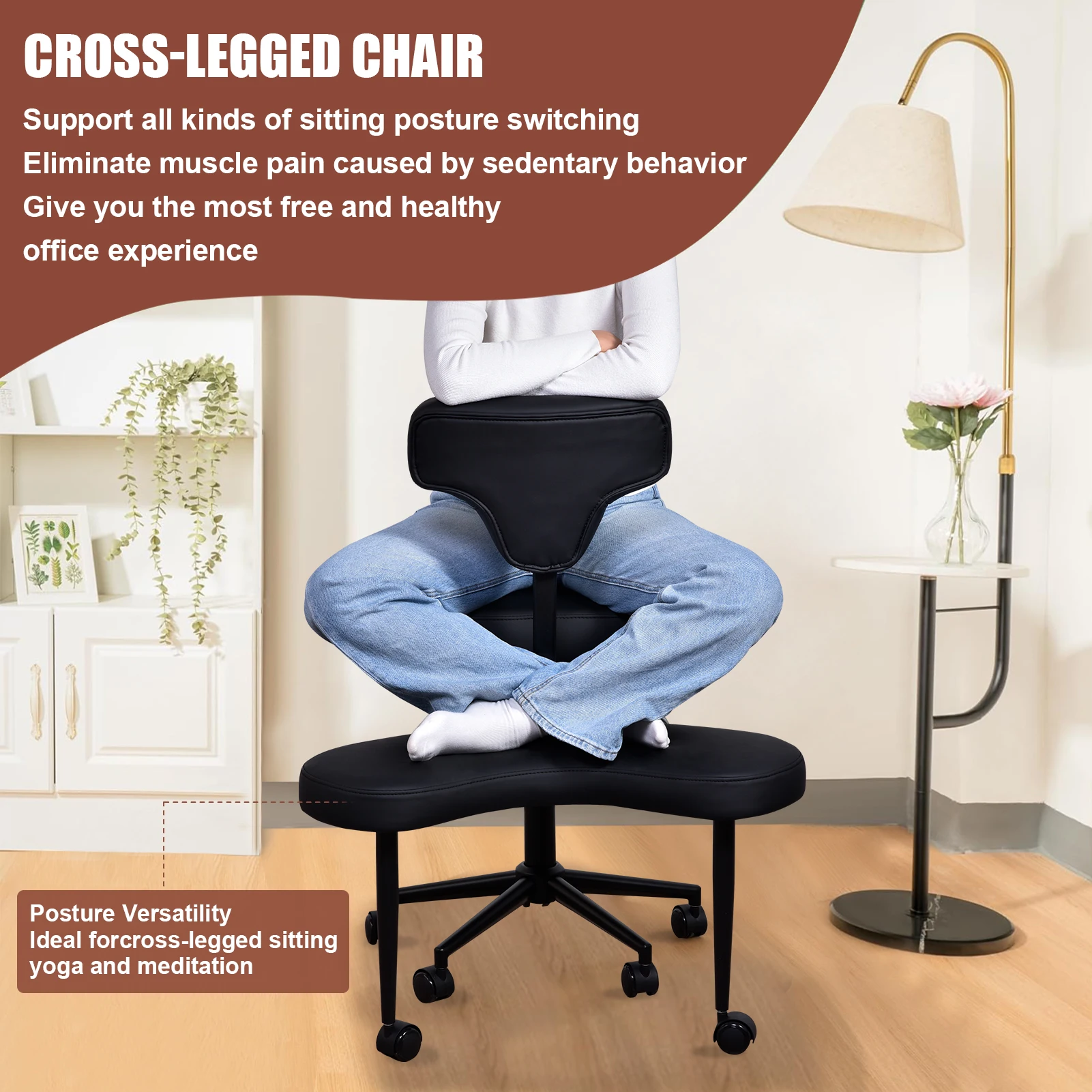 Кресло для медитации Кресло для отдыха с колесами Сиденье с регулируемой высотой и поясничной опорой для взрослых Непоседа и йога