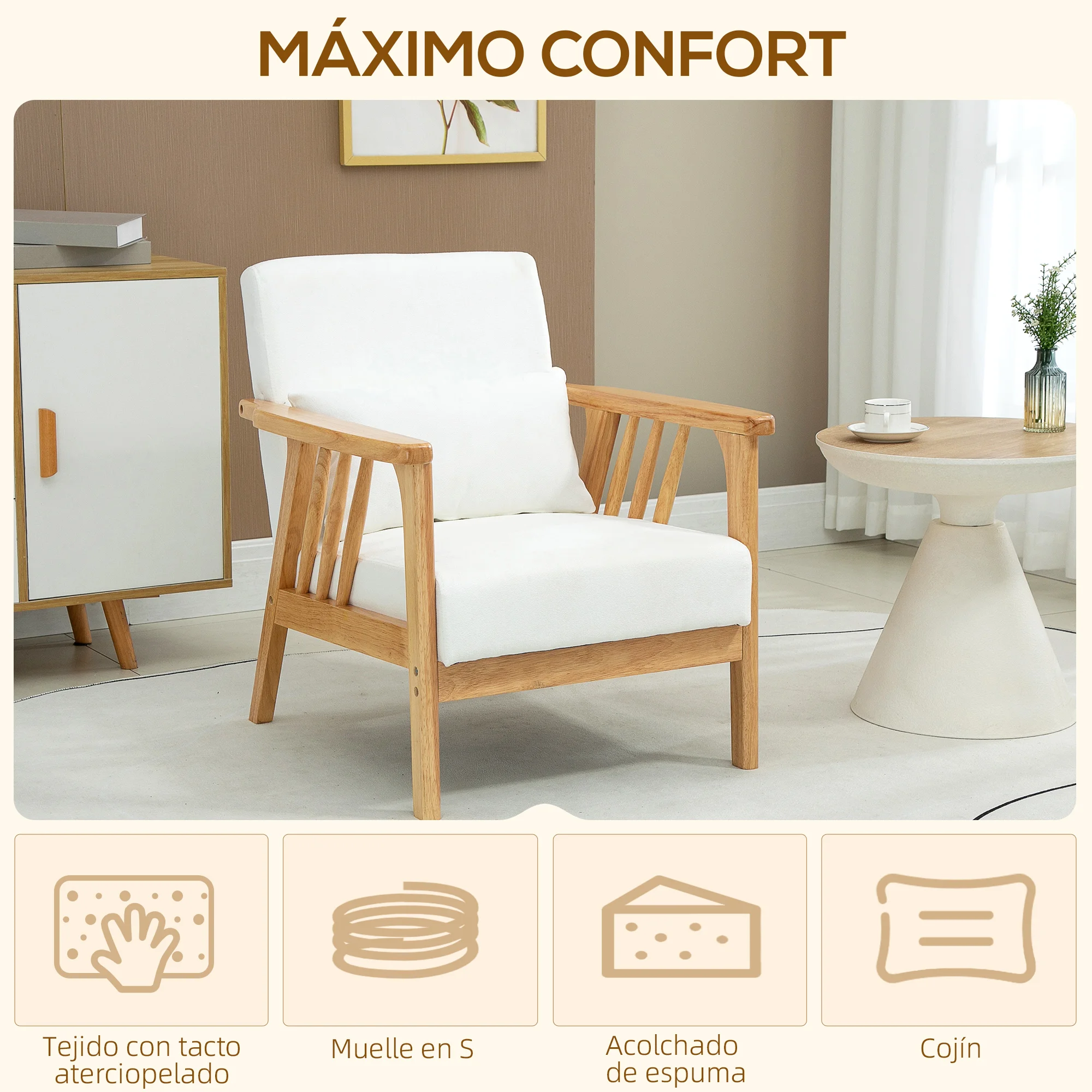 & Iexcl; Обновите свой дом с этим сиденьем HOMCOM! Изготовленное из прочного каучукового дерева, это кресло устойчиво и идеально подходит для длительного использования. Спасибо бархатистая поверхность касания и весны под проложенным местом, это кресло предлагают идеальный комфорт на ослабляя часы. Кроме того, его оригинальный и уникальный дизайн и нейтральные цвета идеально впишутся в любую обстановку и привнесут нотку элегантности.