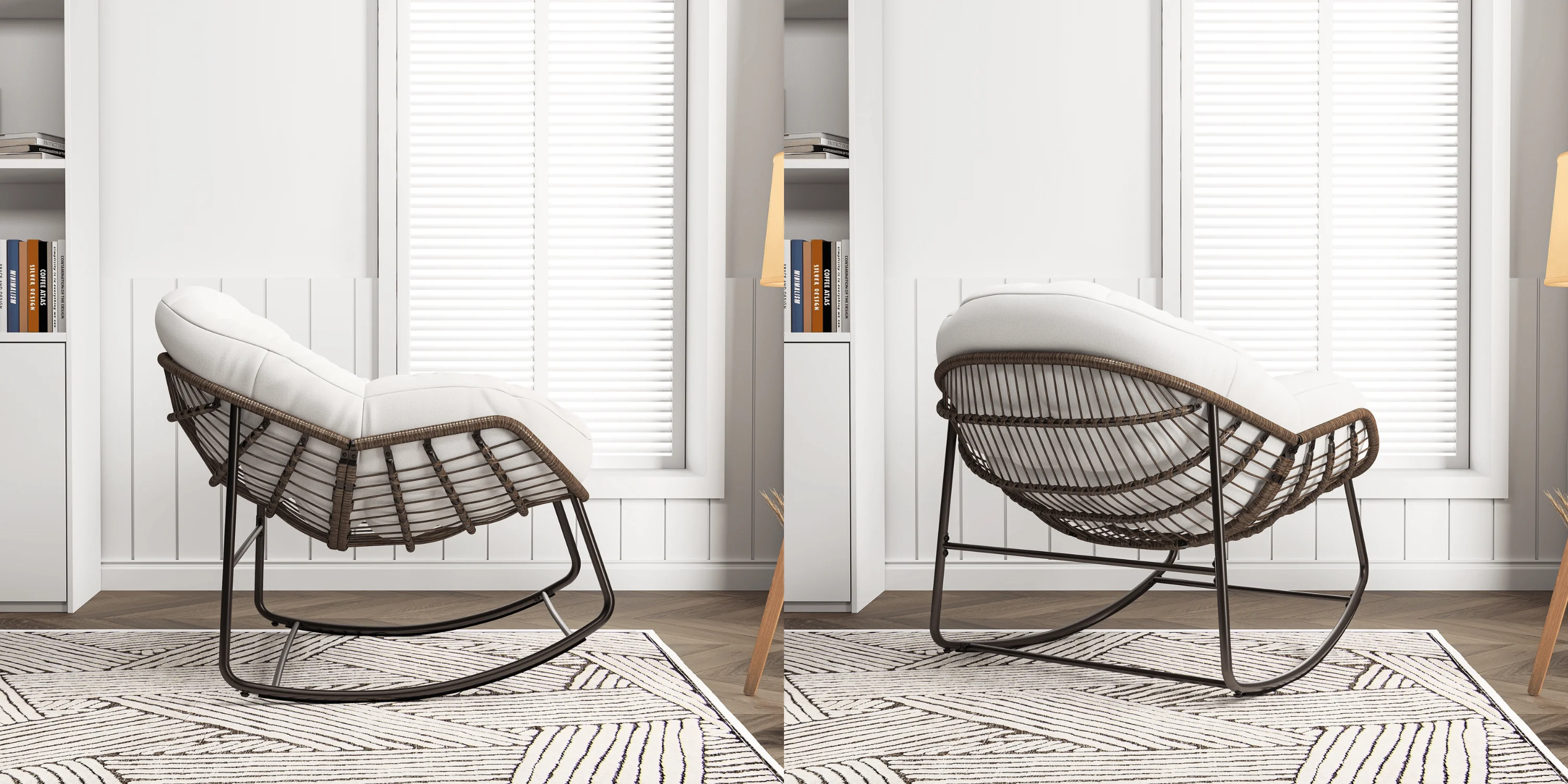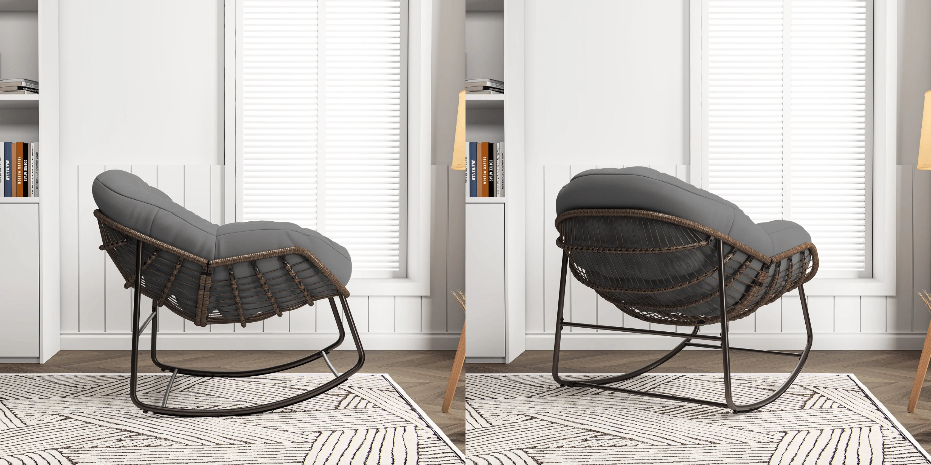 Простая сборка: следуя прилагаемым инструкциям по монтажу, вы сможете быстро и легко собрать кресло-качалку.Это элегантное и роскошное кресло гармонирует с разными стилями оформления.Он, несомненно, станет отличным дополнением вашей гостиной, спальни, детской спальни, стола, террасы, балкона или квартиры.