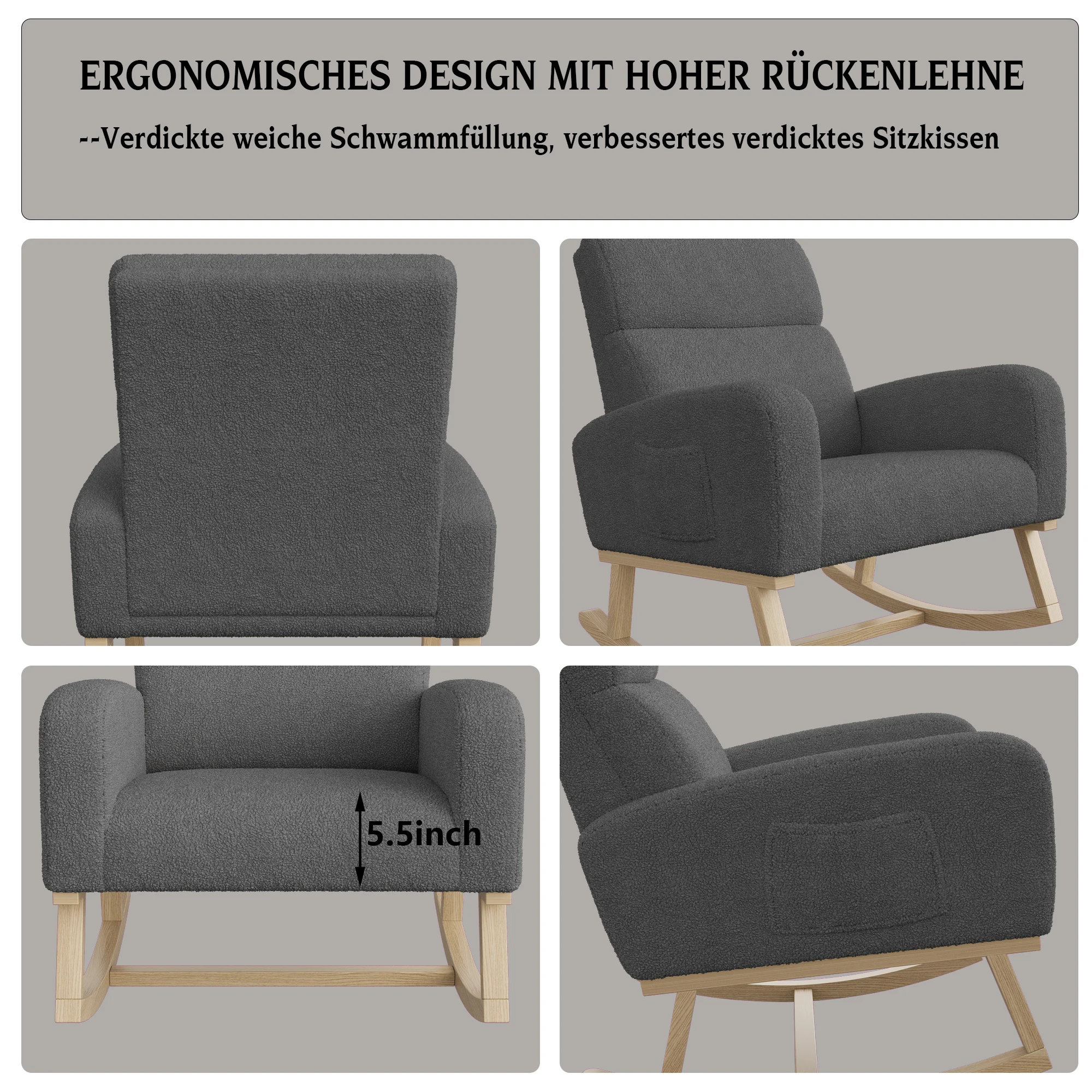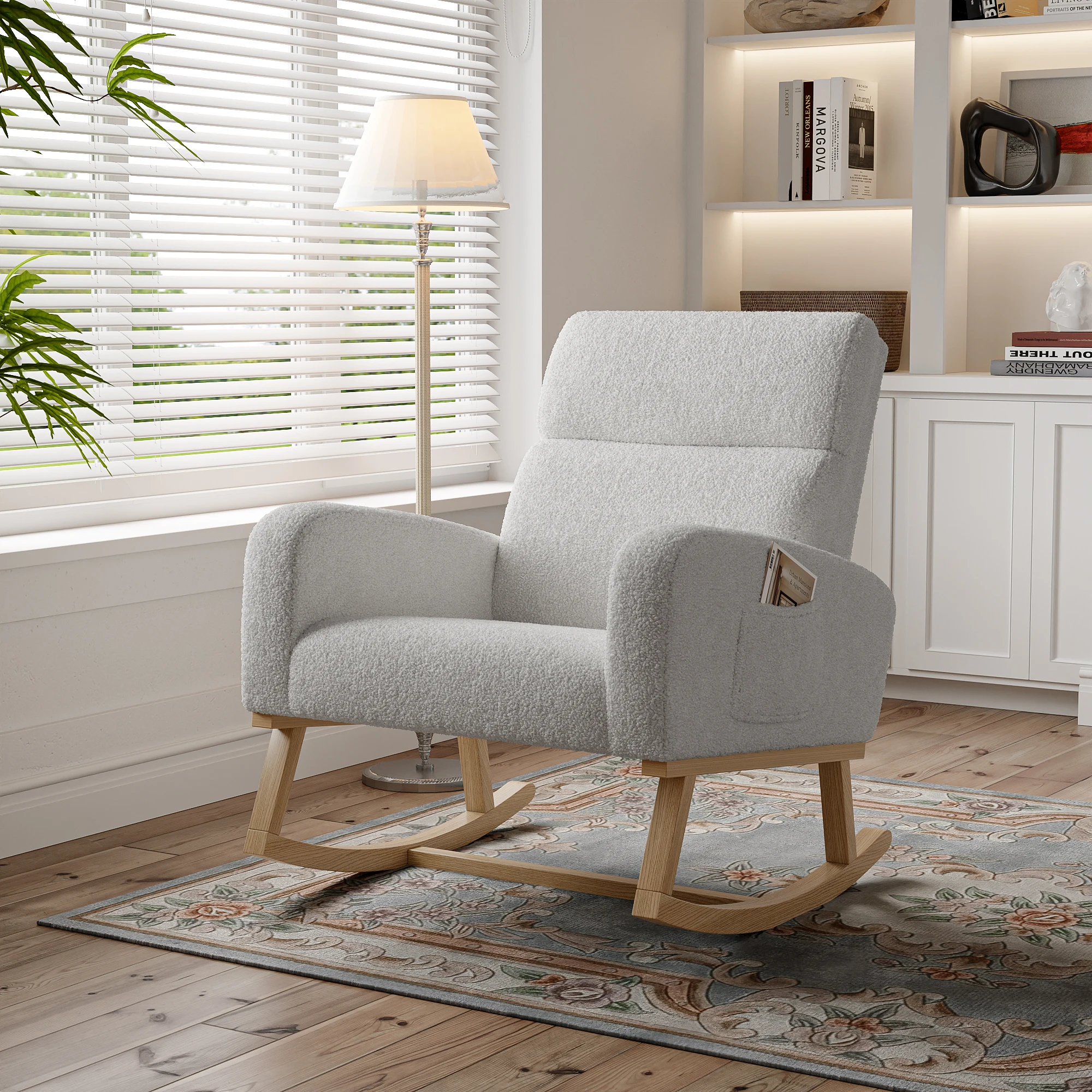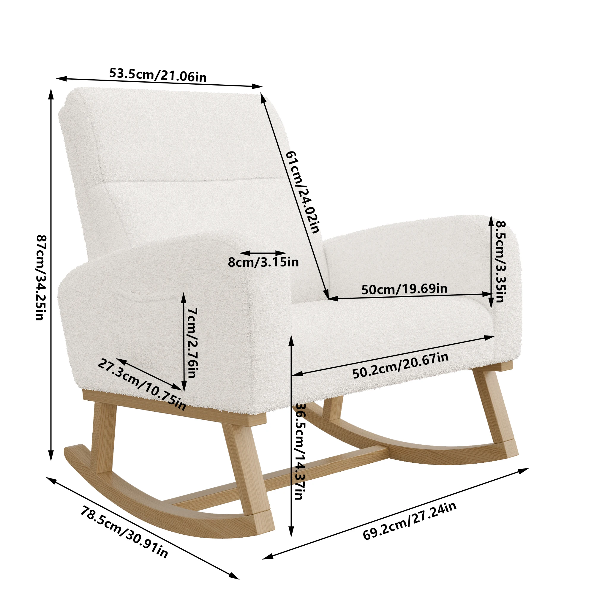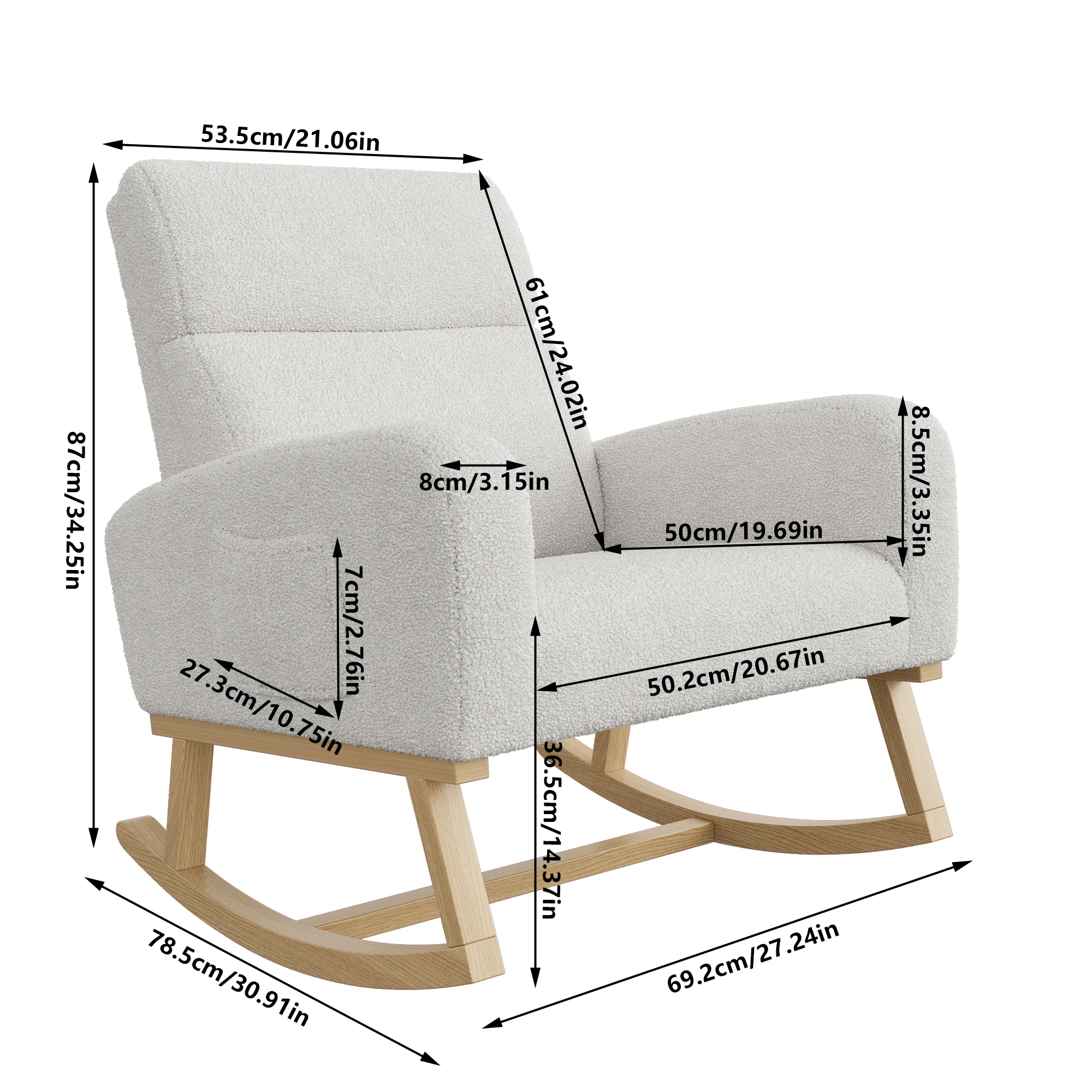 Кресло-качалка Anajqaqia, кресло для отдыха, кресло для гостиной с двумя карманами, кресло-качалка для спальни и балкона, Teddy Velvet
