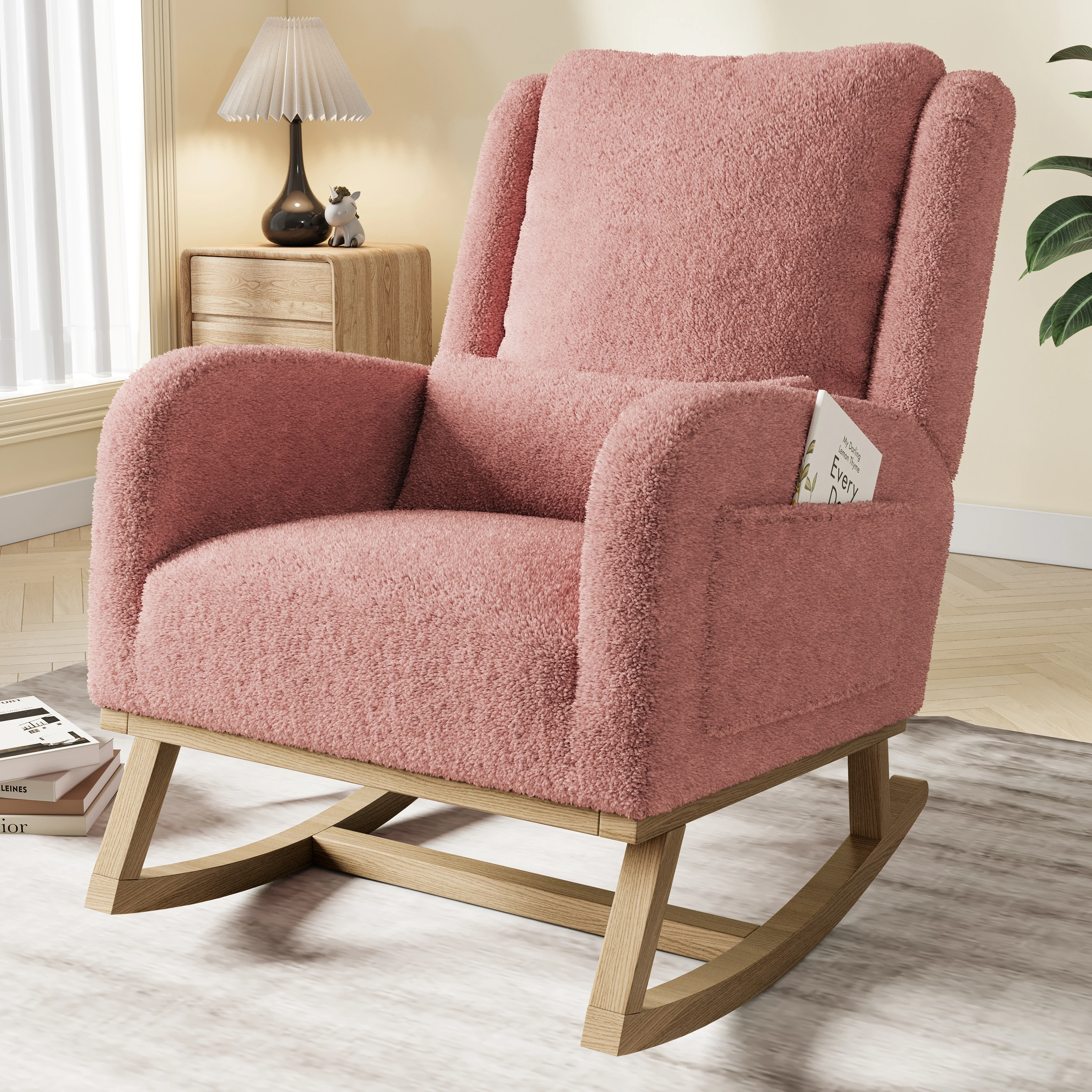 Кресло-качалка Anajqaqia, мягкое кресло, удобное кресло для отдыха с подушкой, для гостиной, льняной/флис Тедди