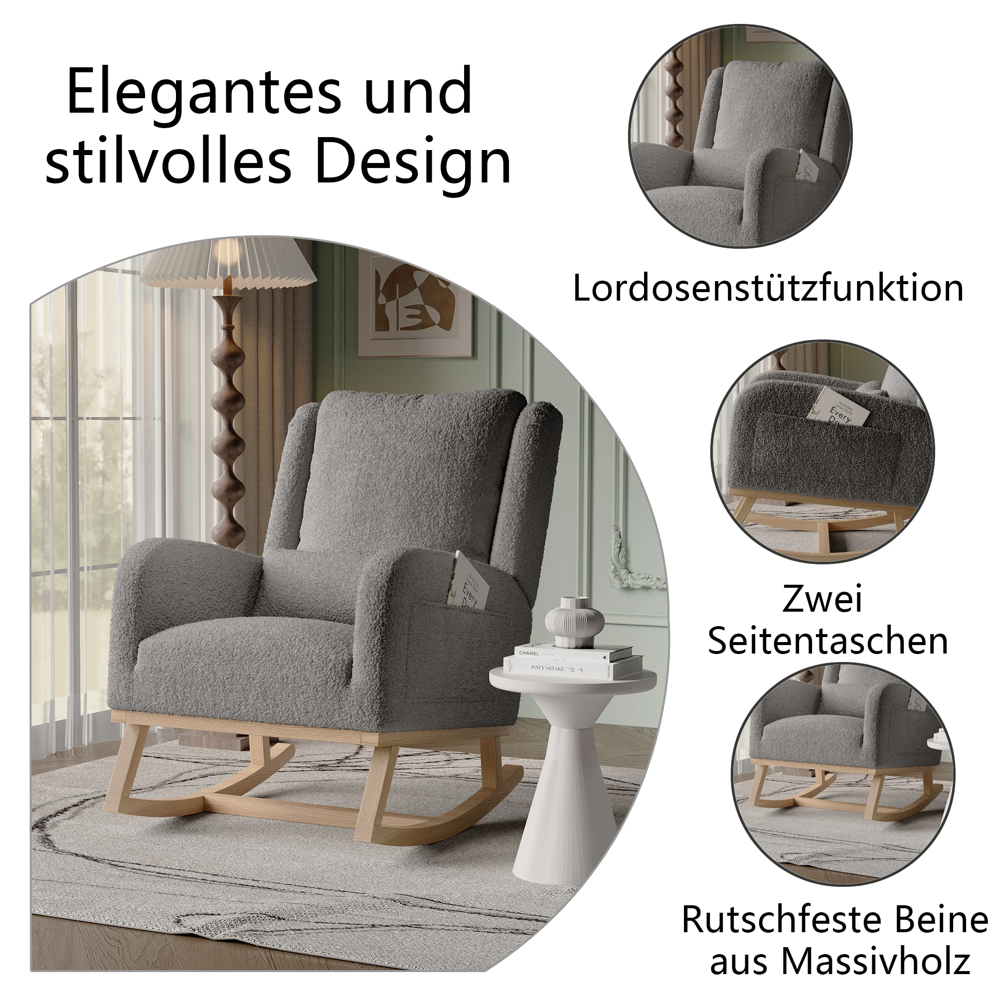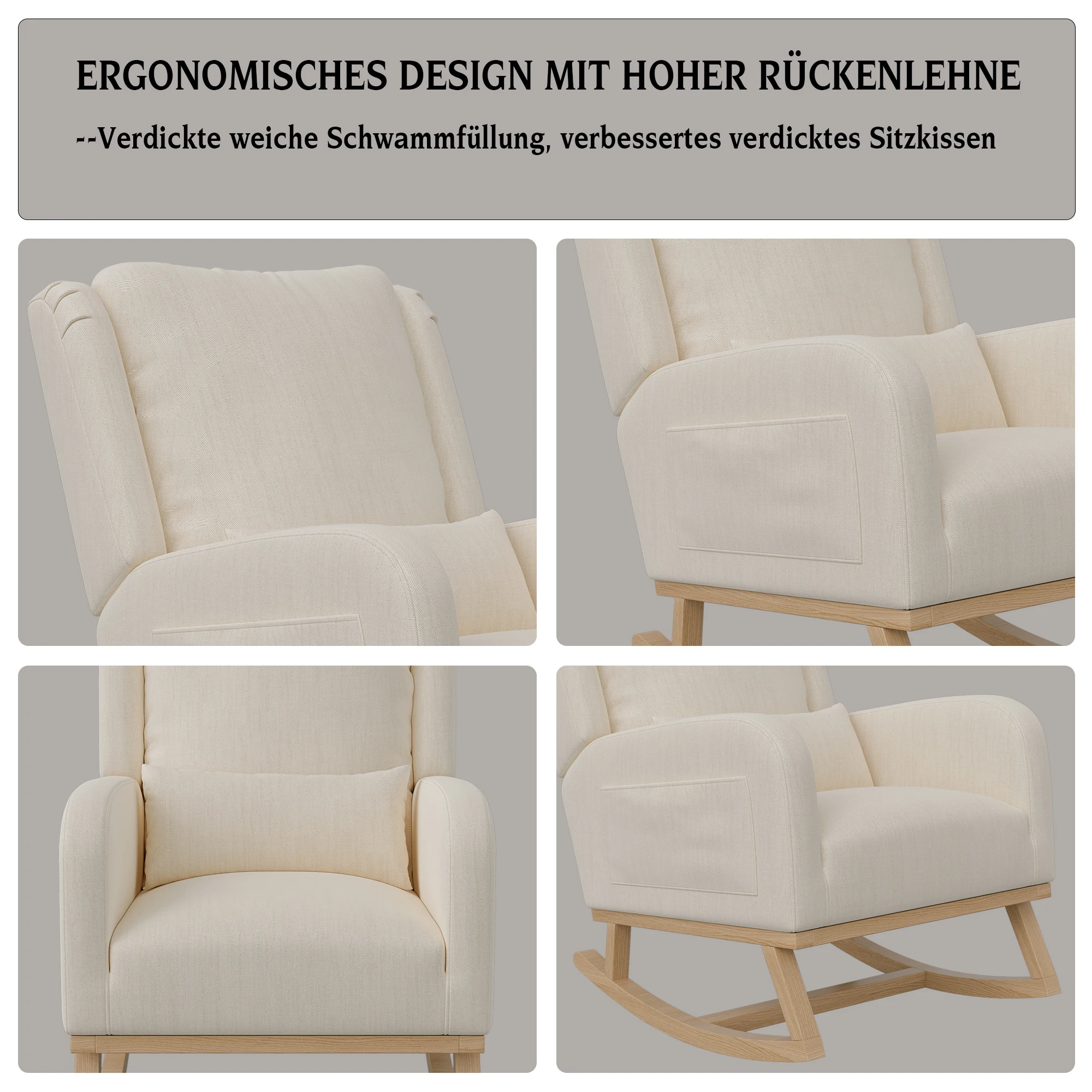 1.Мягкая и удобная амортизация: это кресло-качалка имеет мягкую и удобную поверхность.Мягкая ткань сохраняет прохладу во время чтения любимой книги или отдыха после долгого дня, что делает ее идеальной для спальни или гостиной.