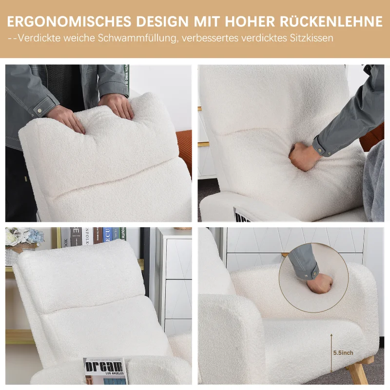 Кресло-качалка Anajqaqia с карманами, белое, берберский флис