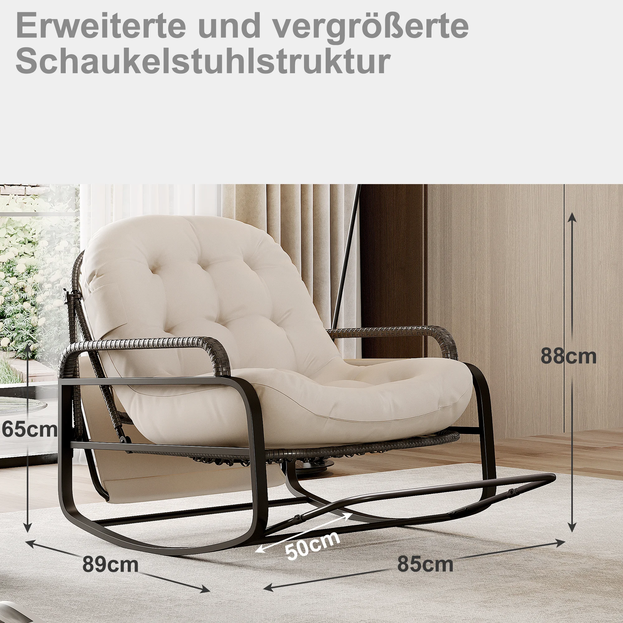 Современный и элегантный дизайн: благодаря современному простому дизайну это кресло-качалка идеально вписывается в любую обстановку на открытом воздухе, будь то в саду, на балконе или на террасе. Съемный чехол на подушку позволяет легко стирать и сушить. Этот стул, сочетающий в себе стильный дизайн и практичность, идеально подходит для тех, кто ищет простое в уходе и элегантное кресло.