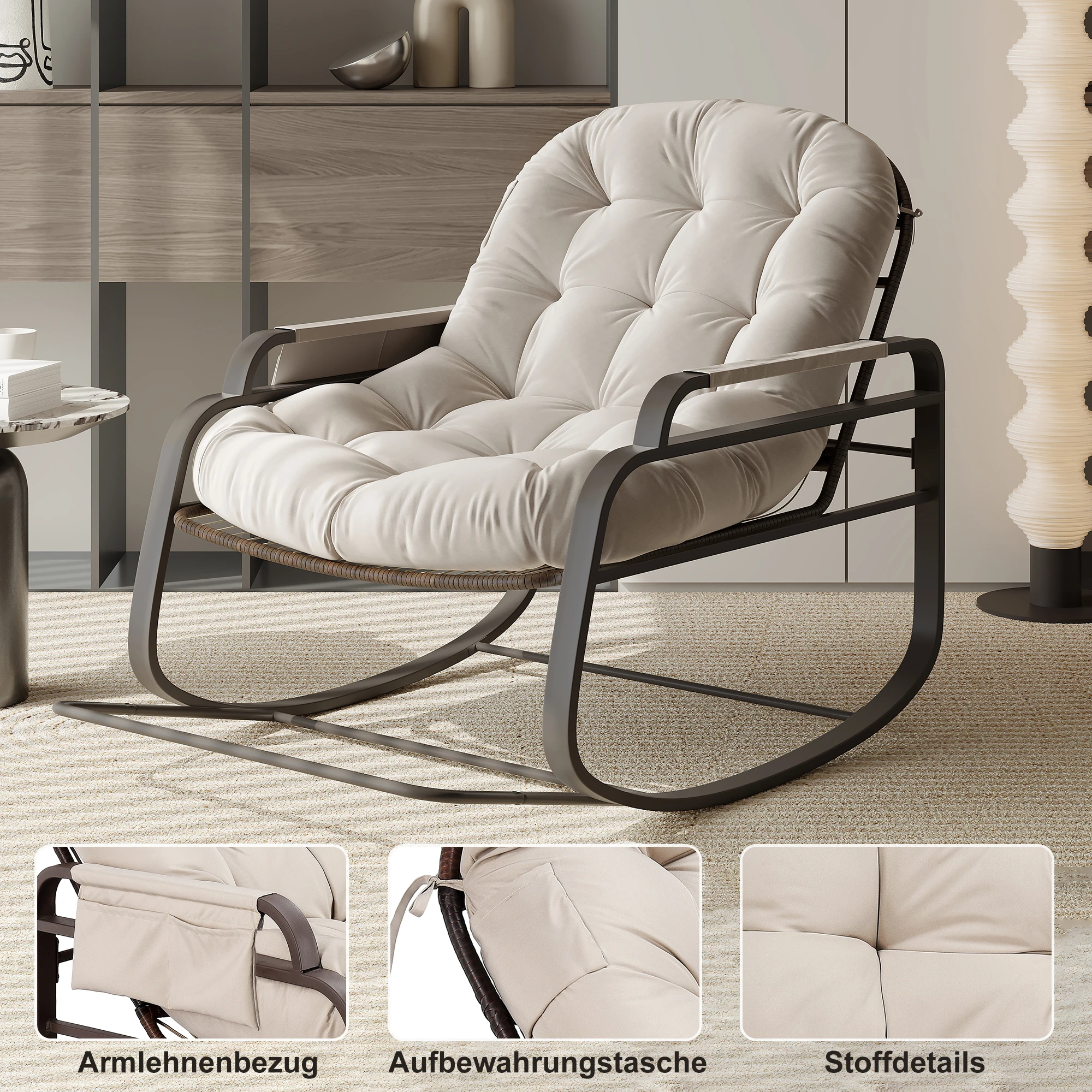 Кресло-качалка Comanlai, кресло-качалка, кресло-качалка для внутреннего и наружного использования, с мягкой подушкой и металлическим каркасом